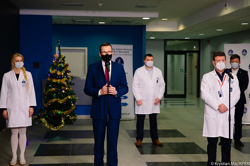 – Przed nami Święta Bożego Narodzenia. W drugim dniu Świąt przyjadą do Polski pierwsze szczepionki – poinformował premier Mateusz Morawiecki. Pierwsze szczepienia zostaną przeprowadzone w 73 szpitalach węzłowych, zarówno w dużych aglomeracjach, jak i mniejszych ośrodkach. – W 2021 r. musimy zwalczyć wirusa po to, żeby normalnie żyć. Tutaj, w szpitalu MSWiA w Warszawie już za kilka dni zostanie zaszczepiony pierwszy pacjent – dodał premier.