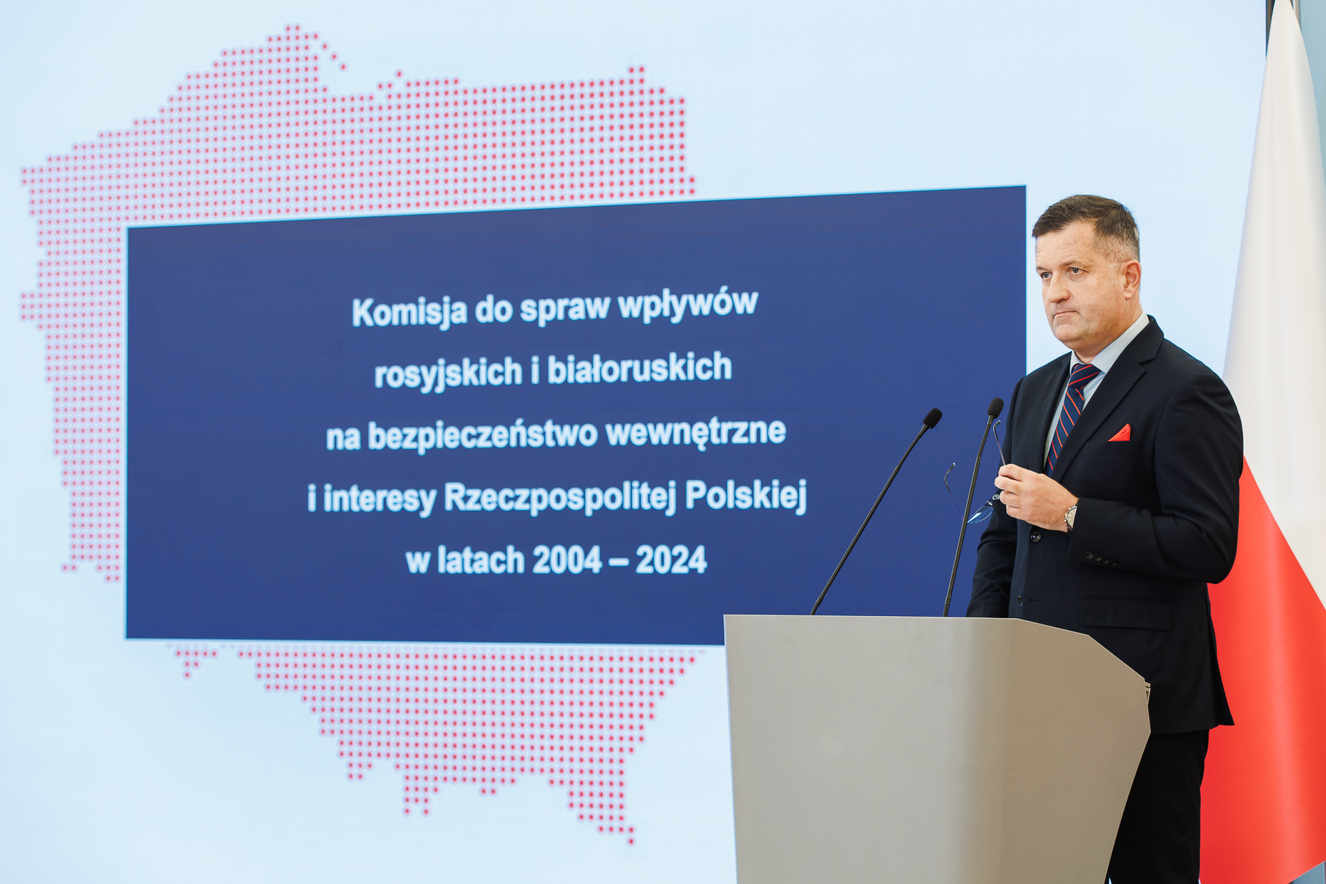 Generał Jarosław Stróżyk, Szef Służby Kontrwywiadu Wojskowego i Przewodniczący Komisji ds. badania wpływów rosyjskich i białoruskich, przedstawił dotychczasowe efekty pracy Komisji. Wskazał na przypadki świadczące o celowym osłabianiu bezpieczeństwa Polski, w tym potencjału obronnego wojska.