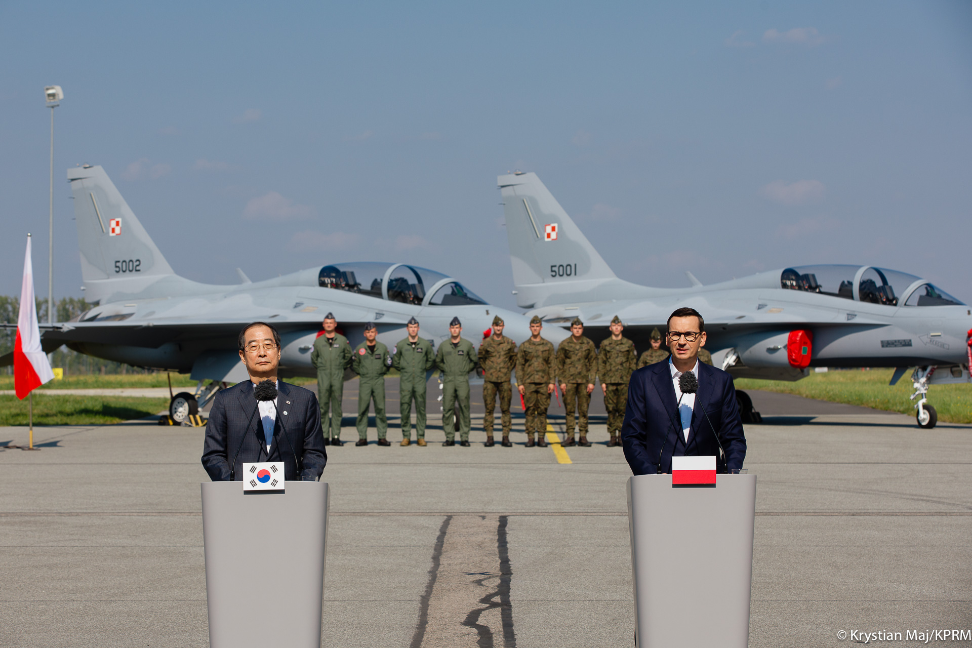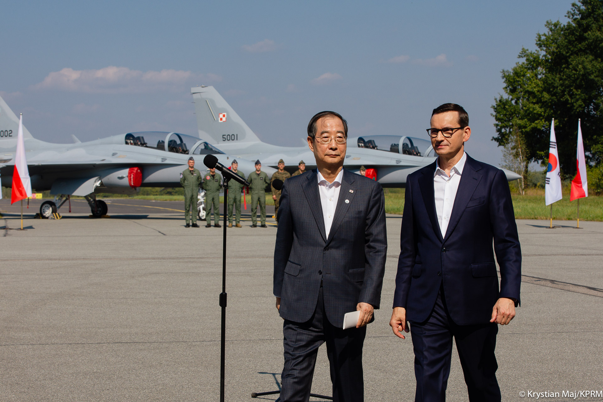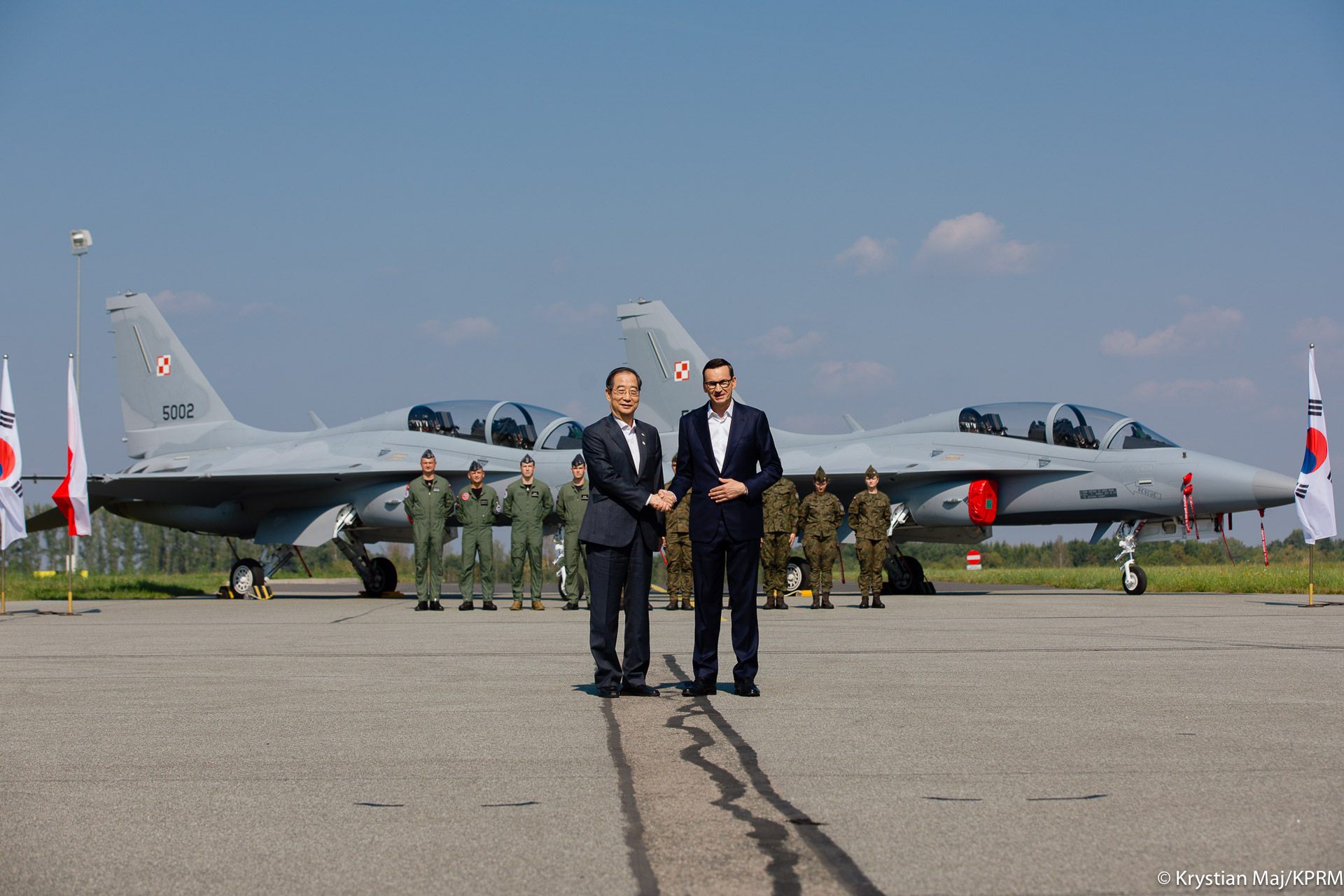Bezpieczeństwo Polski i naszych obywateli to priorytet dla rządu – dlatego wzmacniamy naszą armię. W 2024 r. planujemy przeznaczyć ok. 4,2 proc. PKB na obronność. Zwiększamy środki i realizujemy zamówienia na najnowocześniejszy sprzęt dla Wojska Polskiego. Współpracujemy w tym zakresie z Republiką Korei. Premier Mateusz Morawiecki spotkał się z koreańskim premierem Han Duck-soo na terenie 23. Bazy Lotnictwa Taktycznego w Mińsku Mazowieckim. Szefowie rządów zobaczyli koreańskie samoloty FA-50, które są najnowszym wyposażeniem polskich Sił Powietrznych. Spotkanie premierów było również okazją do rozmów dwustronnych o gospodarce i obronności.