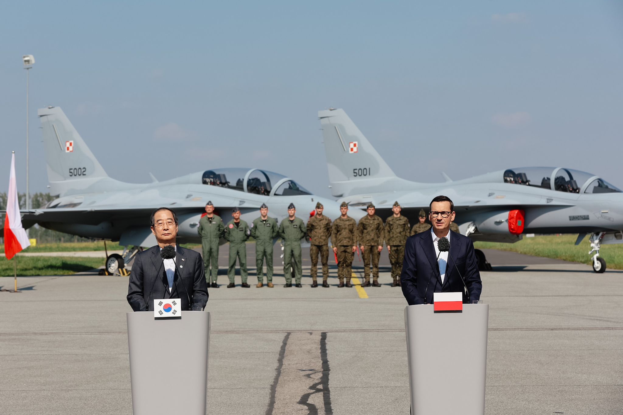 W Mińsku Mazowieckim odbyły się rozmowy dwustronne pomiędzy premierem Mateuszem Morawieckim, a premierem Republiki Korei Han Duck-soo. Szefowie rządów omówili kwestie związane z polsko-koreańską współpracą wojskową – przede wszystkim kolejne dostawy koreańskiego sprzętu wojskowego dla Polski oraz przeniesienie jego produkcji do naszego kraju.