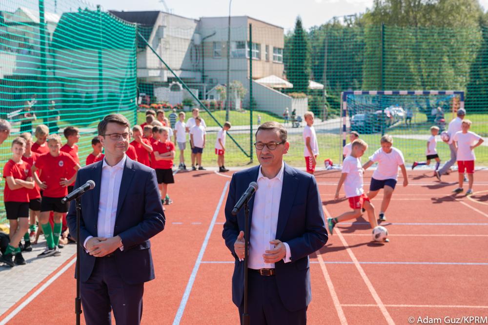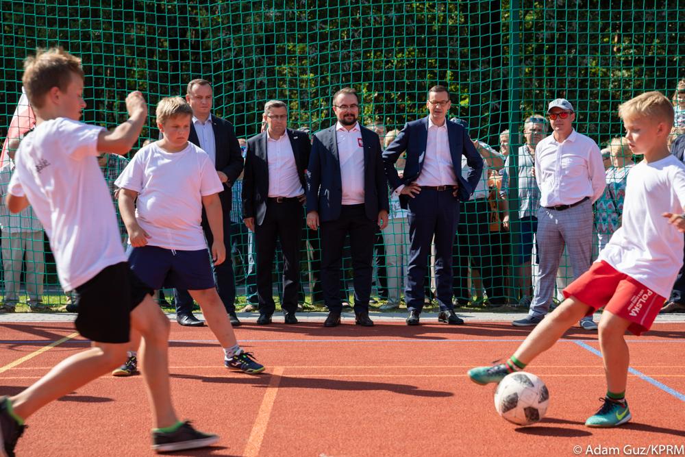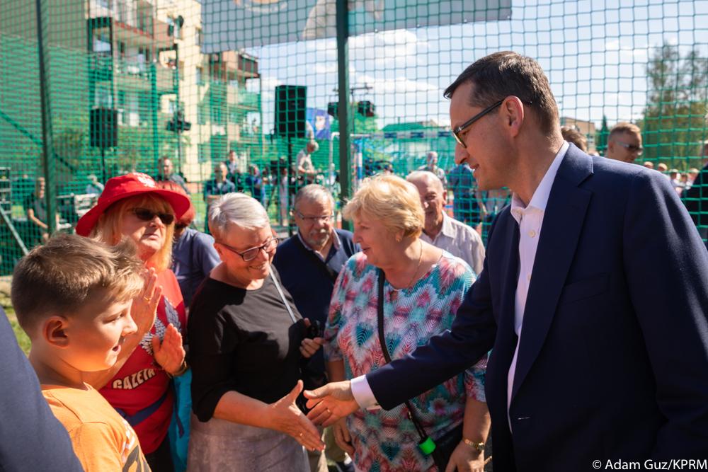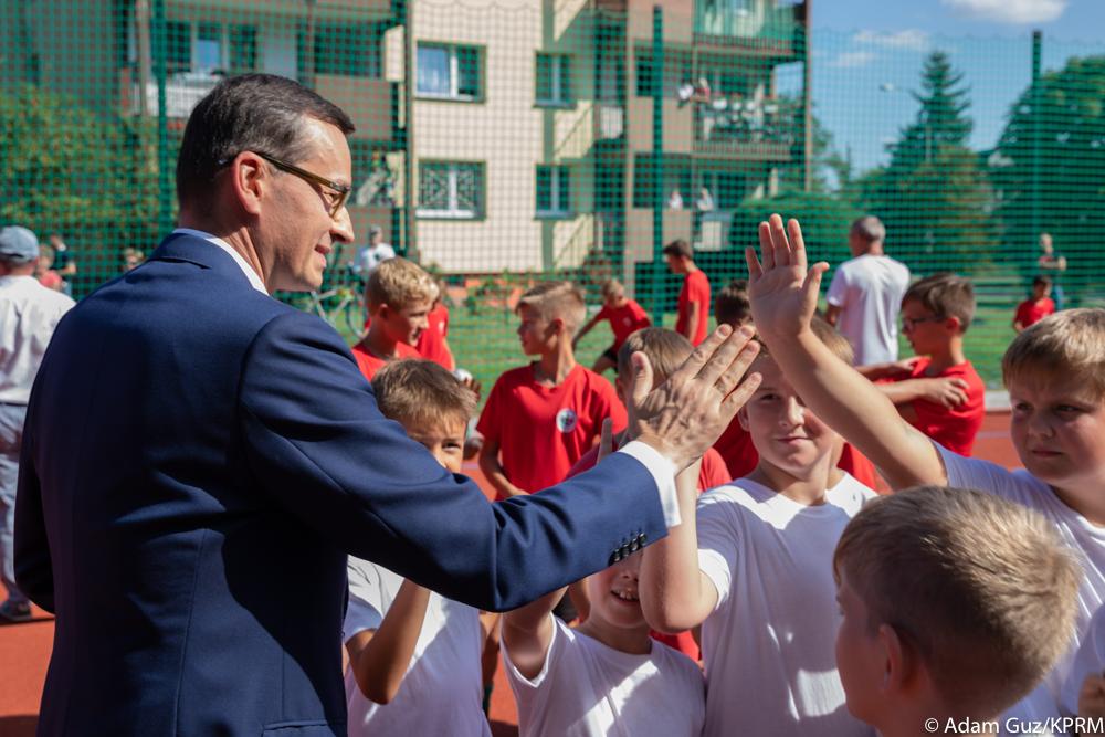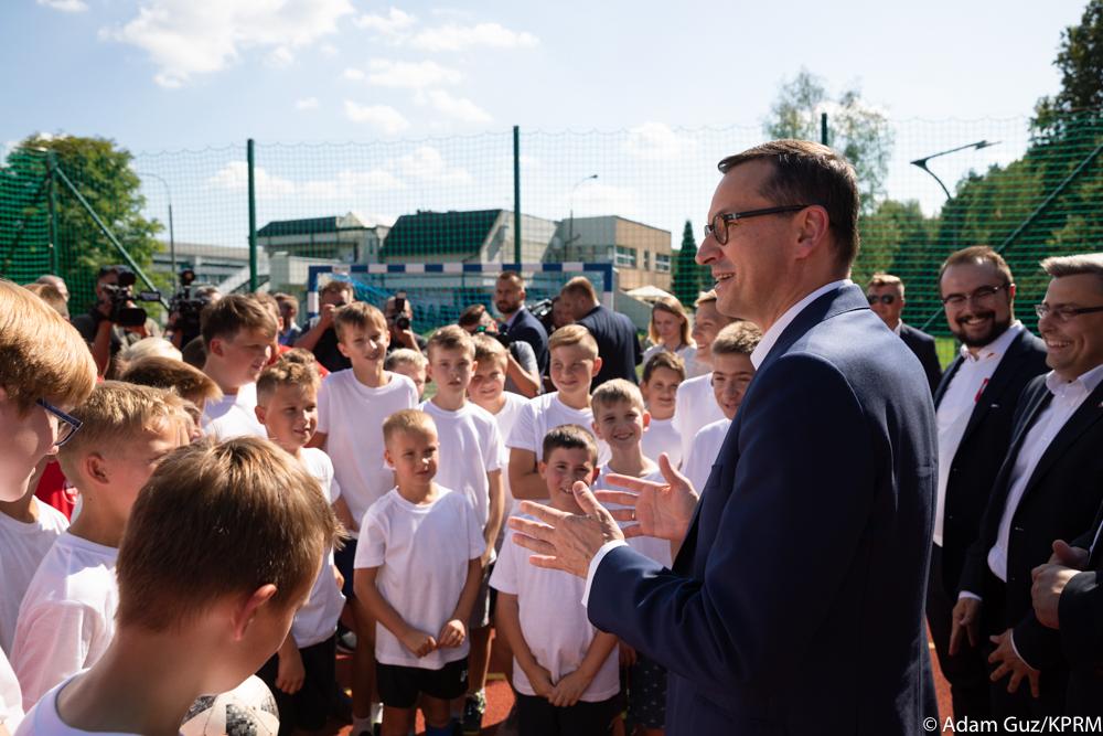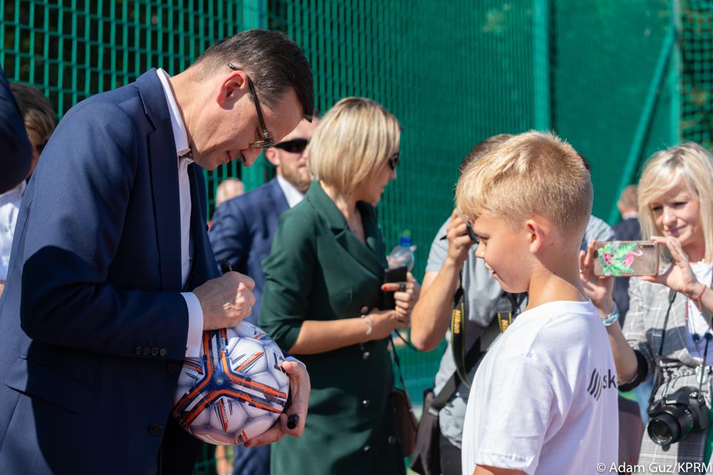 Szef rządu spotkał się z młodzieżą na nowo wybudowanym boisku w Tychach. Ta inwestycja to odpowiedź na apel dzieci. Przypomniał, że rok temu rozmawiał z grupą chłopców, którzy marzyli o boisku na swoim osiedlu, a dzisiaj odbywają się na nim treningi. Jak dodał, to boisko powstało z marzeń dzieci.