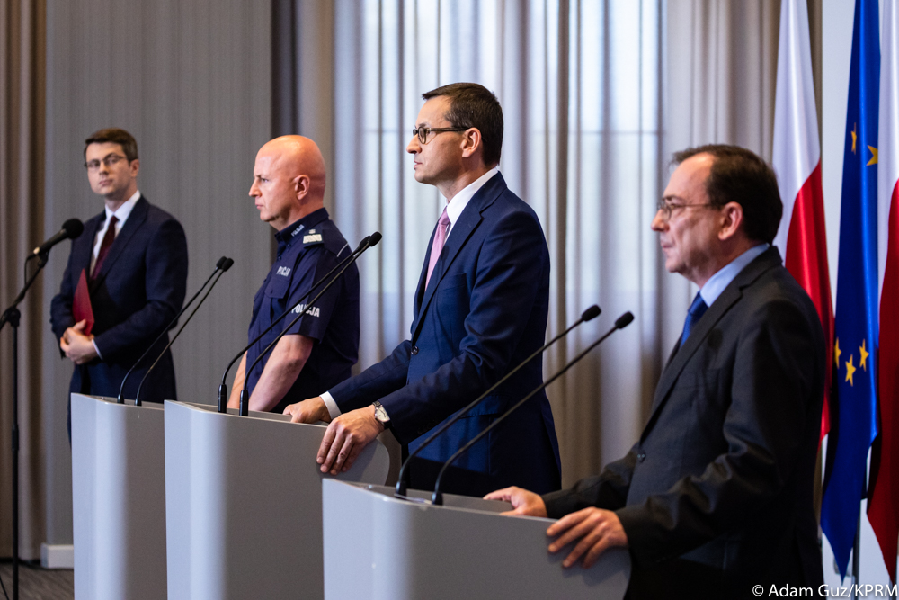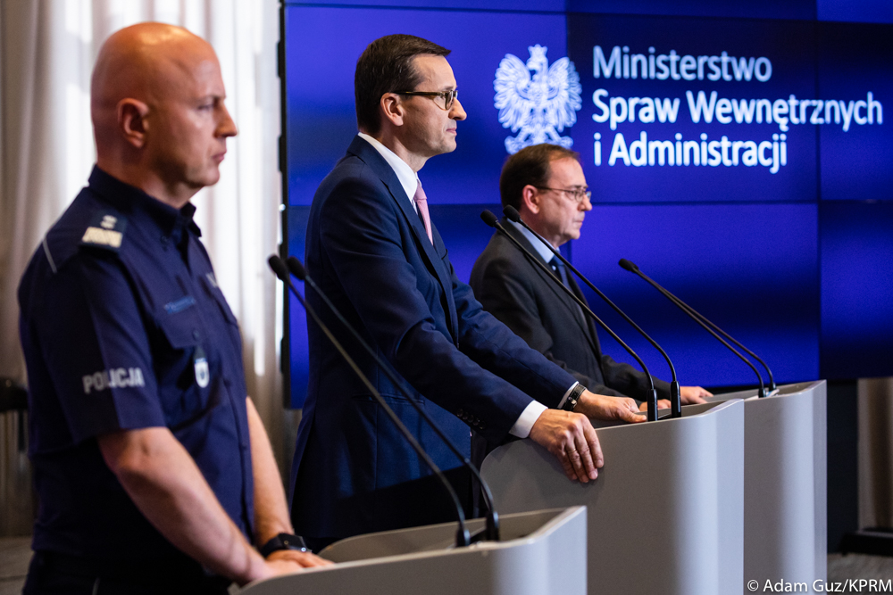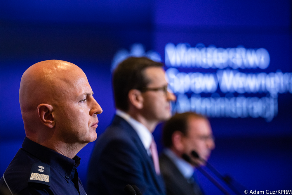 Premier Mateusz Morawiecki wraz z Ministrem Spraw Wewnętrznych i Administracji Mariuszem Kamińskim zapowiedzieli wzmocnienie bezpieczeństwa funkcjonariuszy Policji na służbie. Kary za przestępstwa przeciw policjantom, np. naruszanie ich nietykalności, zostaną zaostrzone. Wiąże się to z zatrzymaniem dwóch mężczyzn podejrzanych o czynną napaść na funkcjonariuszy Policji. Mężczyznom grozi kara do 10 lat pozbawienia wolności.