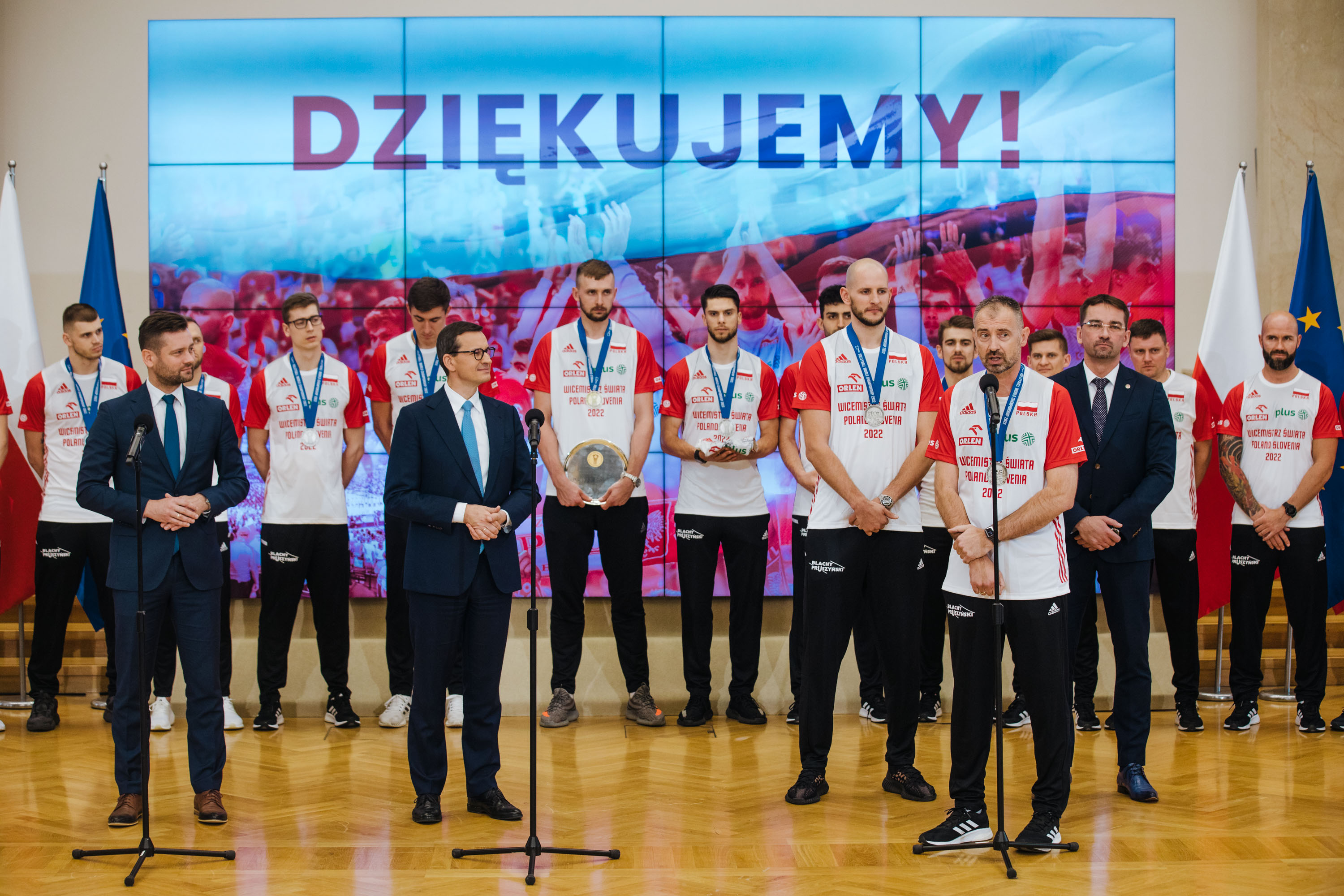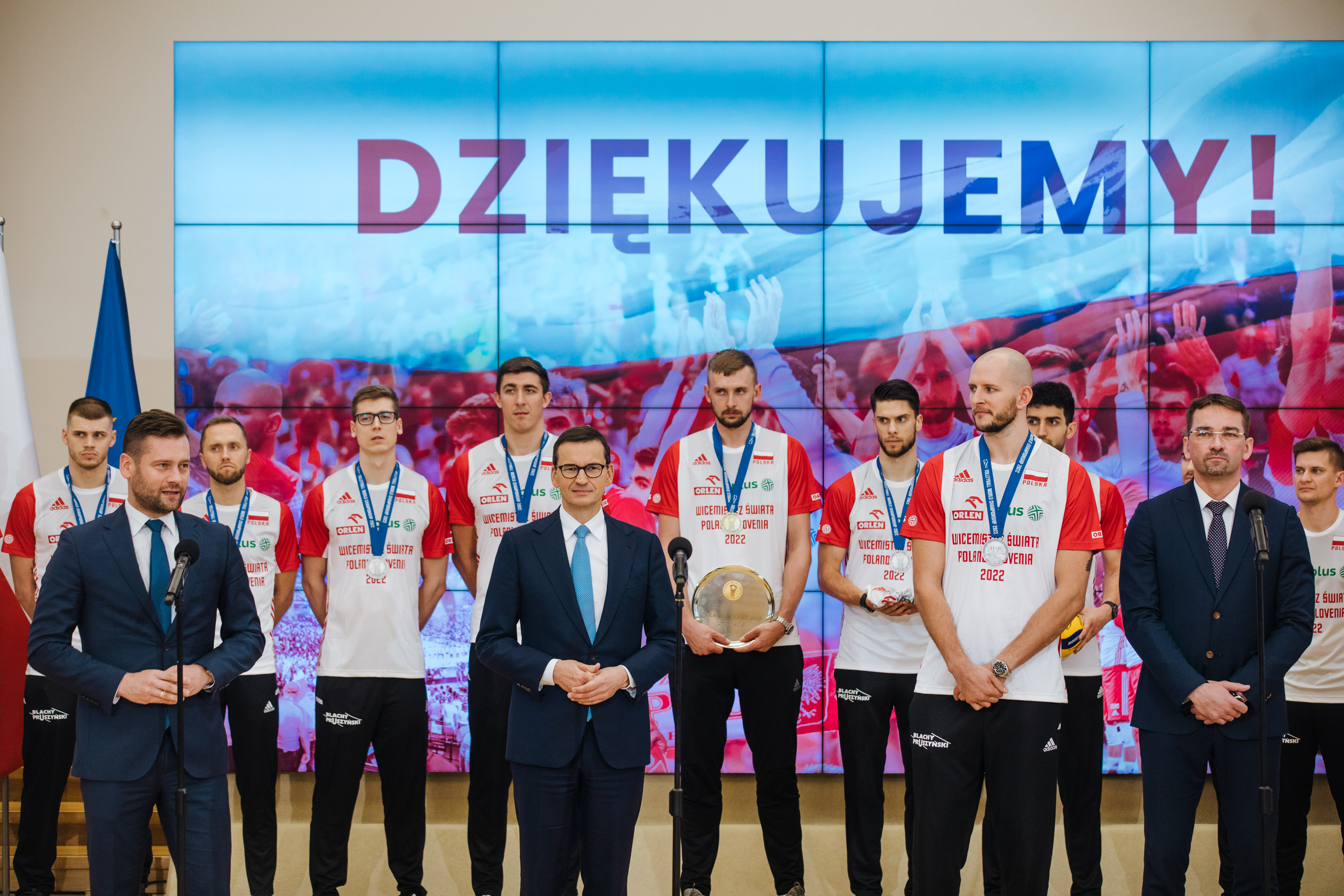 Szef polskiego rządu gościł w Kancelarii Prezesa Rady Ministrów srebrnych medalistów Mistrzostw Świata w Piłce Siatkowej Mężczyzn 2022. Polska reprezentacja uplasowała się na drugim miejscu, ale cały czas zajmuje pierwszą lokatę w międzynarodowym zestawieniu rankingu FIVB siatkarzy 2022. Nasz kraj, wraz ze Słowenią, był organizatorem tegorocznych Mistrzostw w piłce siatkowej mężczyzn.