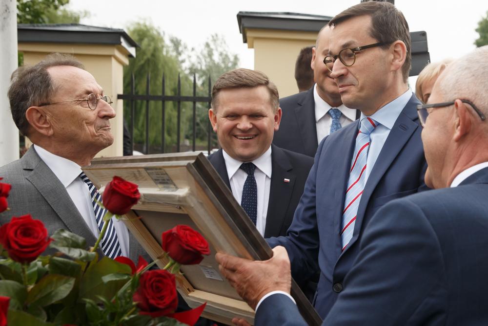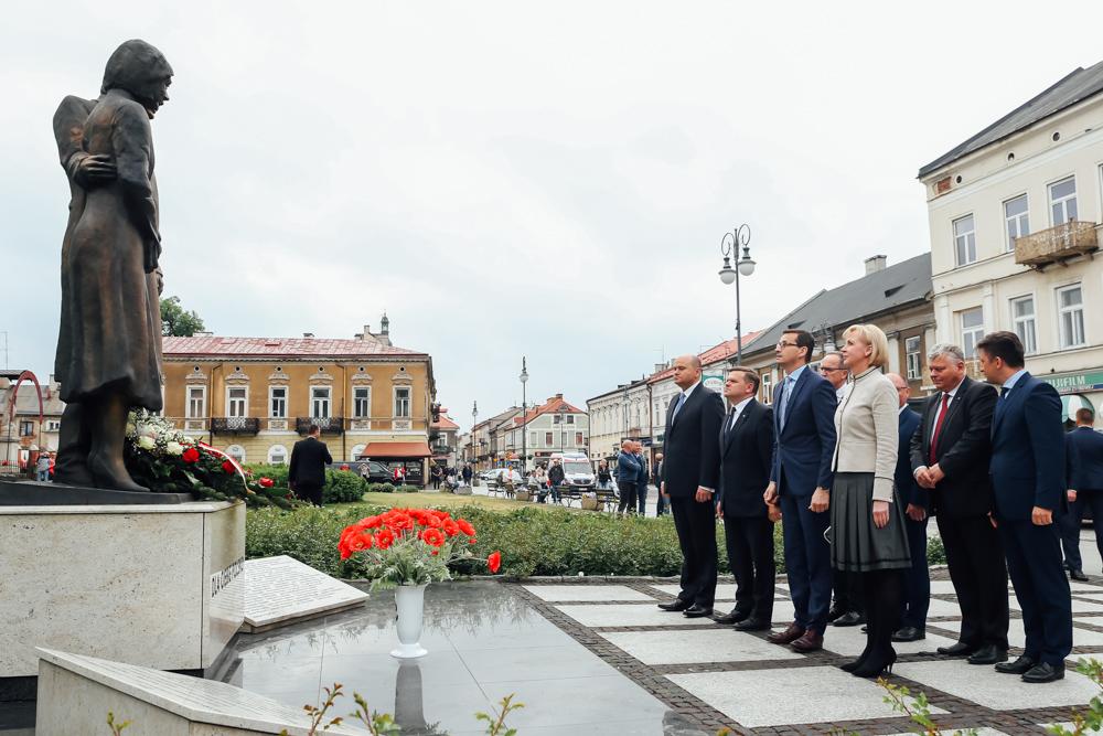 Przed spotkaniem z mieszkańcami miasta Mateusz Morawiecki złożył kwiaty pod pomnikiem Lecha i Marii Kaczyńskich w Radomiu. Pomnik Lecha i Marii Kaczyńskich został odsłonięty w 2013 r. Jest to pierwszy w Polsce pomnik przedstawiający parę prezydencką.