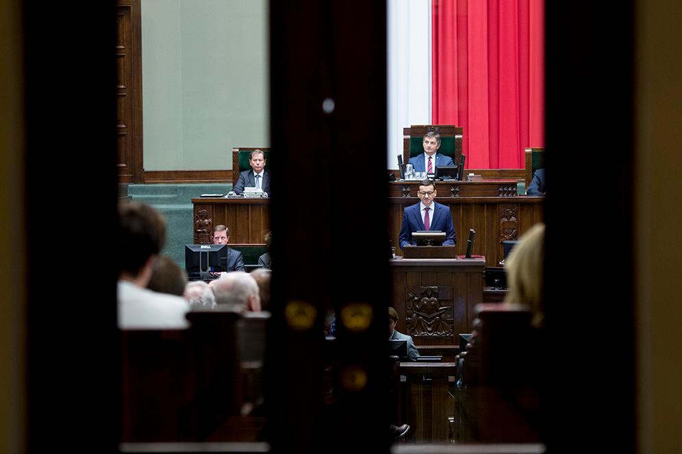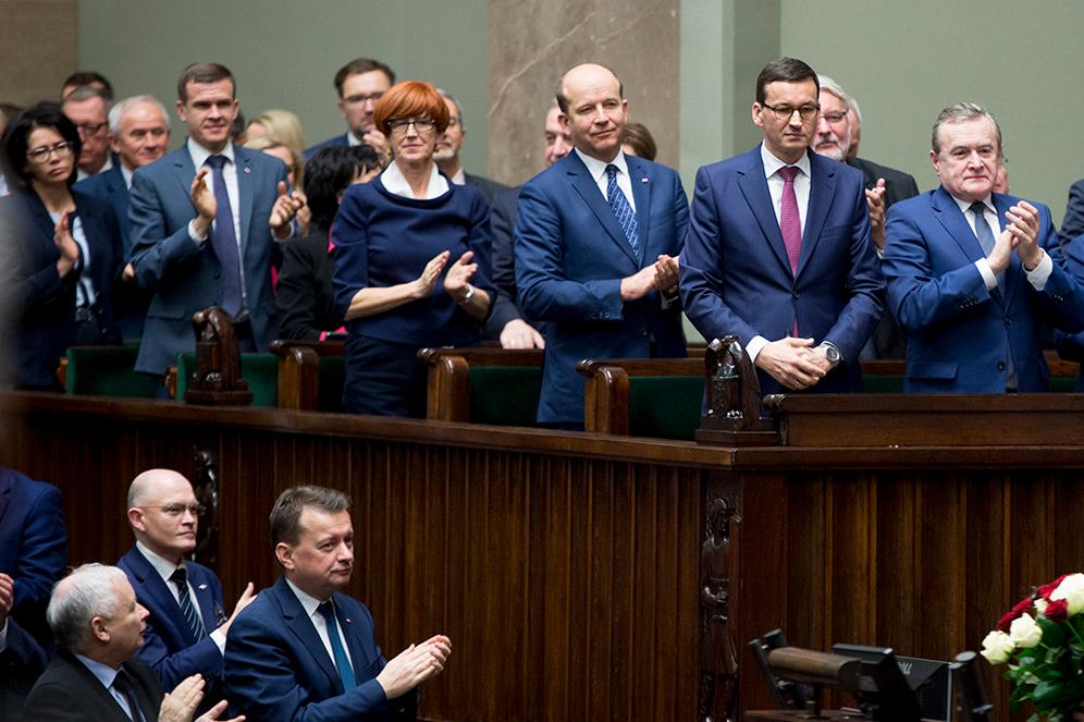 Na wstępie wystąpienia w parlamencie premier Mateusz Morawiecki podziękował Beacie Szydło za wspólne lata ciężkiej pracy. Stwierdził, że jest ona i pozostanie symbolem solidarnościowej rewolucji, przywracającej godne życie milionom polskich rodzin. Dziękuję pani w imieniu całego rządu za pani tytaniczną pracę, za wrażliwość i nieustępliwą wiarę w sens naprawy Rzeczpospolitej