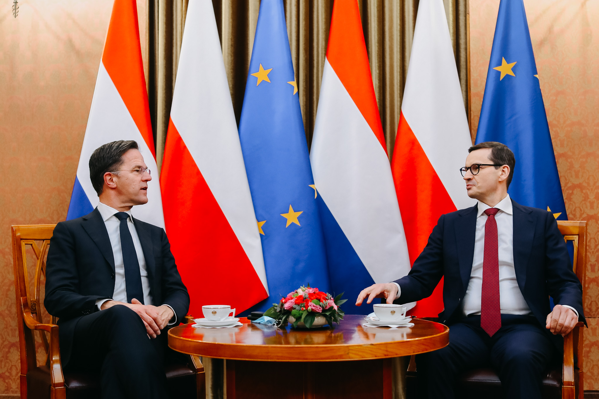 Premier Mateusz Morawiecki: Dziękuję Królestwu Niderlandów i Markowi osobiście za deklarację pełnego wsparcia w aktualnej sytuacji