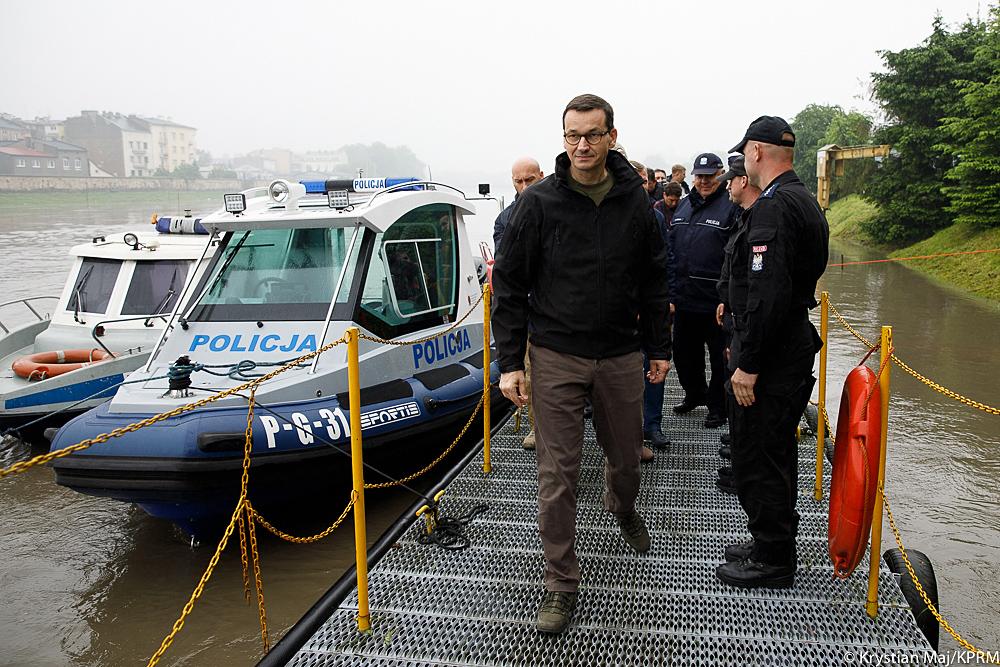 Premier odwiedził także kolejne miejsca dotknięte skutkami podtopień i powodzi w woj. podkarpackim, m.in. okolice rzeki Łęg, w miejscowości Ruda koło Stalowej Woli, gdzie strażacy umacniali wał przeciwpowodziowy oraz miejscowość Wrzawy w powiecie tarnobrzeskim, gdzie również trwała akcja przeciwpowodziowa. Szef rządu pojechał także do policjantów komisariatu wodnego w Krakowie.