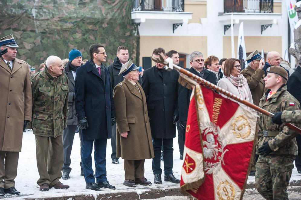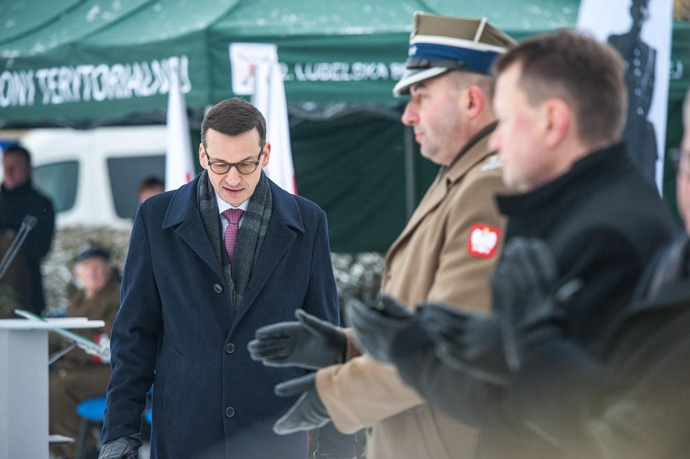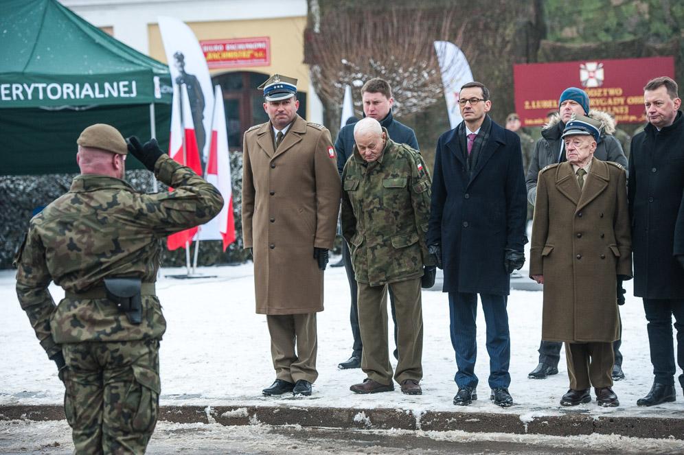 Szef rządu przyjął meldunek od Dowódcy 2. Lubelskiej Brygady Obrony Terytorialnej Płk. Tadeusza Nastarowicza i podkreślił, że ofiarna służba Polsce to dbałość o bezpieczeństwo granic oraz pomoc ludności cywilnej. Wspomniał m.in. o patronie 2. Lubelskiej Brygadzie Obrony Terytorialnej, Hieronimie Dekutowskim ps. Zapora
