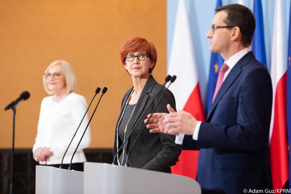 Szef rządu wraz z minister rodziny, pracy i polityki społecznej Elżbietą Rafalską przedstawili założenia projektu ustawy, który reguluje wypłatę jednorazowego świadczenia pieniężnego dla emerytów i rencistów w 2019 r. tzw. Emerytura +. Projekt stanowi jedną z propozycji programowych tzw. nowej piątki i zakłada, że w maju 2019 r. wszyscy emeryci i renciści otrzymają 1,1 tys. złotych jednorazowego świadczenia pieniężnego. Środki trafią do ponad 9,72 mln osób. Dziś został on skierowany do konsultacji społecznych i międzyresortowych.