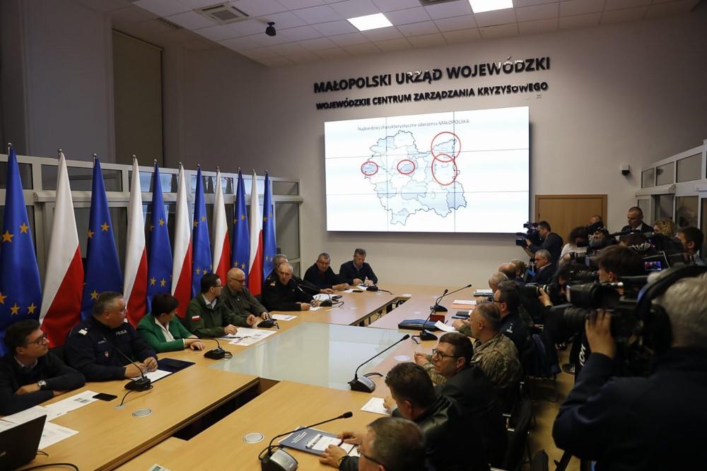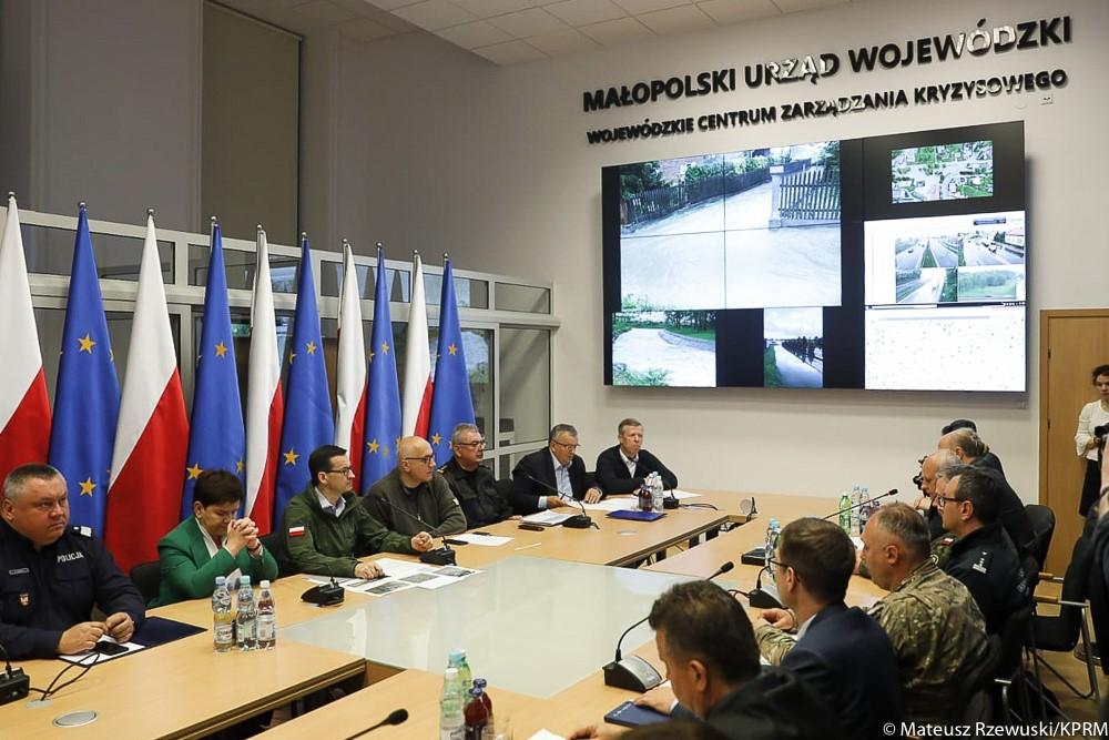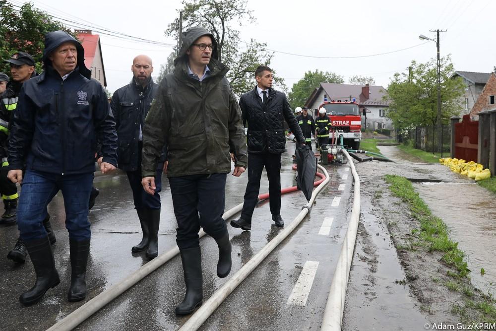 W związku z sytuacją pogodową w Małopolsce szef rządu uczestniczył w odprawie sztabu kryzysowego w Krakowie. Odebrał od przedstawicieli służb meldunki o sytuacji pogodowej i hydrologicznej oraz o sytuacji w gminach, w których wystąpiły ulewne deszcze. Następnie odwiedził tereny dotknięte podtopieniami i powodzią.