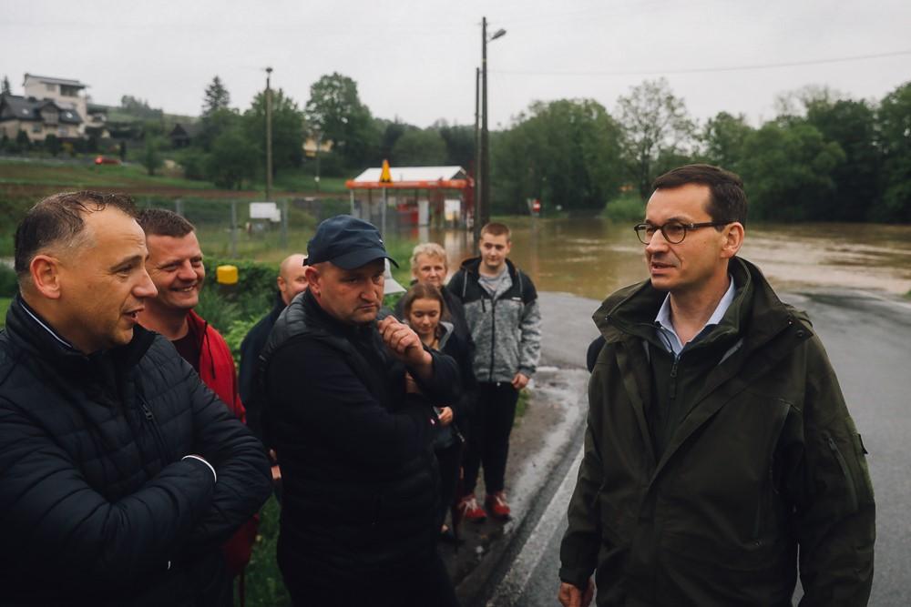 Premier poinformował, że jest w stałym kontakcie z MSWiA i wszystkimi służbami m.in. ze strażą i wojskiem. Podziękował wszystkim, którzy pomagają mieszkańcom w walce ze skutkami powodzi. Będziemy starali się robić wszystko, żeby minimalizować straty i skutki tej powodzi, która tutaj występuje