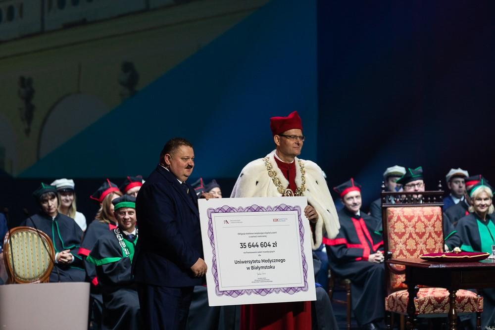 – mówił premier gratulując osiągnięć kadrze naukowej Uniwersytetu Medycznego w Białymstoku. Poinformował także o przekazaniu uczelni z budżetu państwa 50 mln zł, jako grant na centrum badań wykorzystania sztucznej inteligencji w służbie zdrowia.
