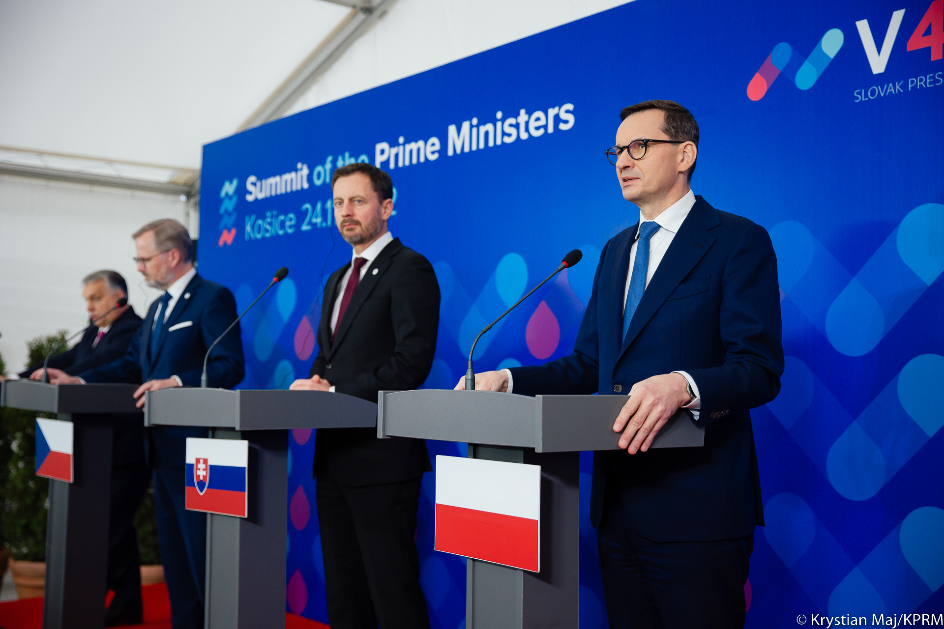 Grupa Wyszehradzka jest bardzo ważnym i efektywnym formatem współpracy regionalnej. Premier Mateusz Morawiecki uczestniczył w szczycie państw V4 - Polski, Czech, Węgier i Słowacji - w Koszycach. Rozmowy między premierami dotyczyły bezpieczeństwa strategicznego oraz kontynuacji współpracy sektorowej przy poszczególnych projektach. Podniesiono przede wszystkim tematy energetyki, wojny na terenie Ukrainy i migracji. Premier Mateusz Morawiecki uzyskał od premiera Viktora Orbana jasną deklarację, że Węgry przystąpią do ratyfikacji rozszerzenia NATO o Szwecję i Finlandię już na pierwszej sesji parlamentarnej nadchodzącego roku.