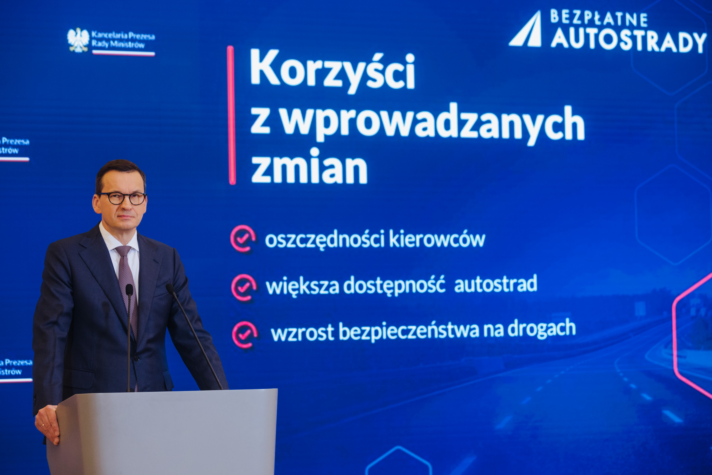 Obecnie obowiązują opłaty na wybranych odcinakach autostrad w Polsce. Chcemy zwolnić kierowców z tego obowiązku i znieść opłaty na odcinkach A2 Stryków-Konin oraz A4 Wrocław-Sośnica. To duża ulga – chcemy, żeby obowiązywała już od najbliższych wakacji. To rozwiązanie przełoży się na również bezpieczeństwo, ponieważ kierowcy wybiorą jazdę bezpłatną autostradą zamiast lokalnymi drogami.