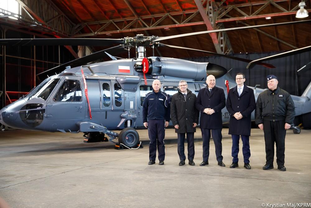 Szef rządu oraz minister spraw wewnętrznych i administracji Joachim Brudziński wzięli udział w uroczystości przekazania dwóch śmigłowców Black Hawk dla polskiej Policji.