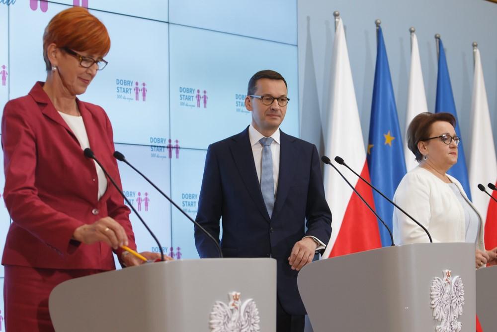 Na zakończenie premier Mateusz Morawiecki podziękował minister Elżbiecie Rafalskiej i minister Annie Zalewskiej za zaangażowanie i przygotowanie programu Dobry Start.