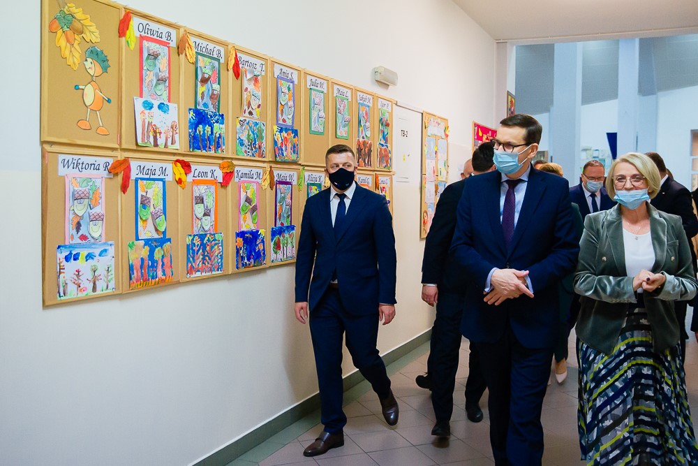 Premier Mateusz Morawiecki odwiedził szkołę podstawową im. Kardynała Stefana Wyszyńskiego w Kryspinowie