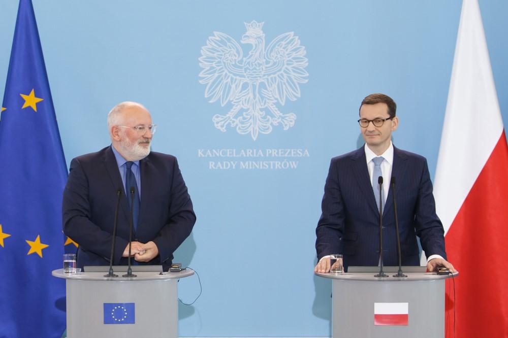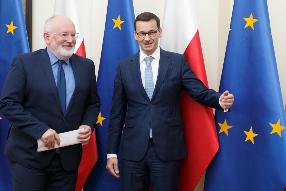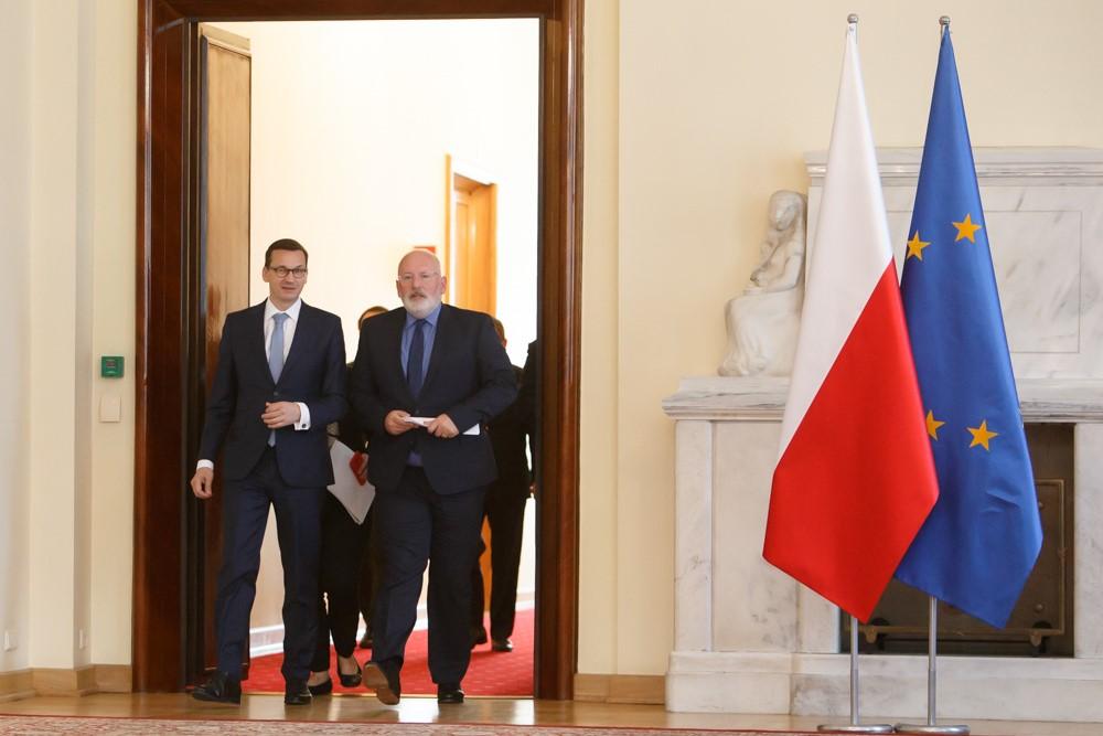 Szef polskiego rządu i wiceprzewodniczący Komisji Europejskiej Frans Timmermans rozmawiali na temat praworządności i reformy wymiaru sprawiedliwości w Polsce.