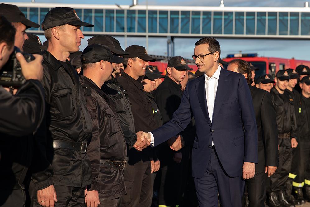 Jesteśmy dumni z Waszej pracy, z tego, że potwierdziliście naszą narodową specjalność jaką jest solidarność z innymi w trudnych momentach – powiedział premier Mateusz Morawiecki podczas uroczystego powitania funkcjonariuszy Państwowej Straży Pożarnej powracających z akcji wsparcia ratowniczego w walce z pożarami lasów w Szwecji.
