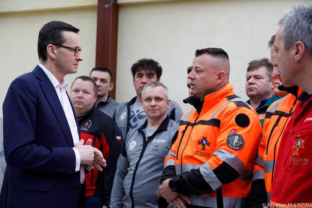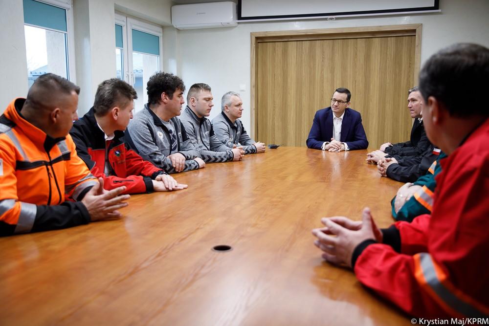 Premier Mateusz Morawiecki spotkał się z ratownikami, którzy wzięli udział w akcji ratowniczej w kopalni Rudna w Polkowicach na Dolnym Śląsku. Szef rządu podziękował zebranym za zakończoną sukcesem akcję ratowniczą w kopalni Rudna.