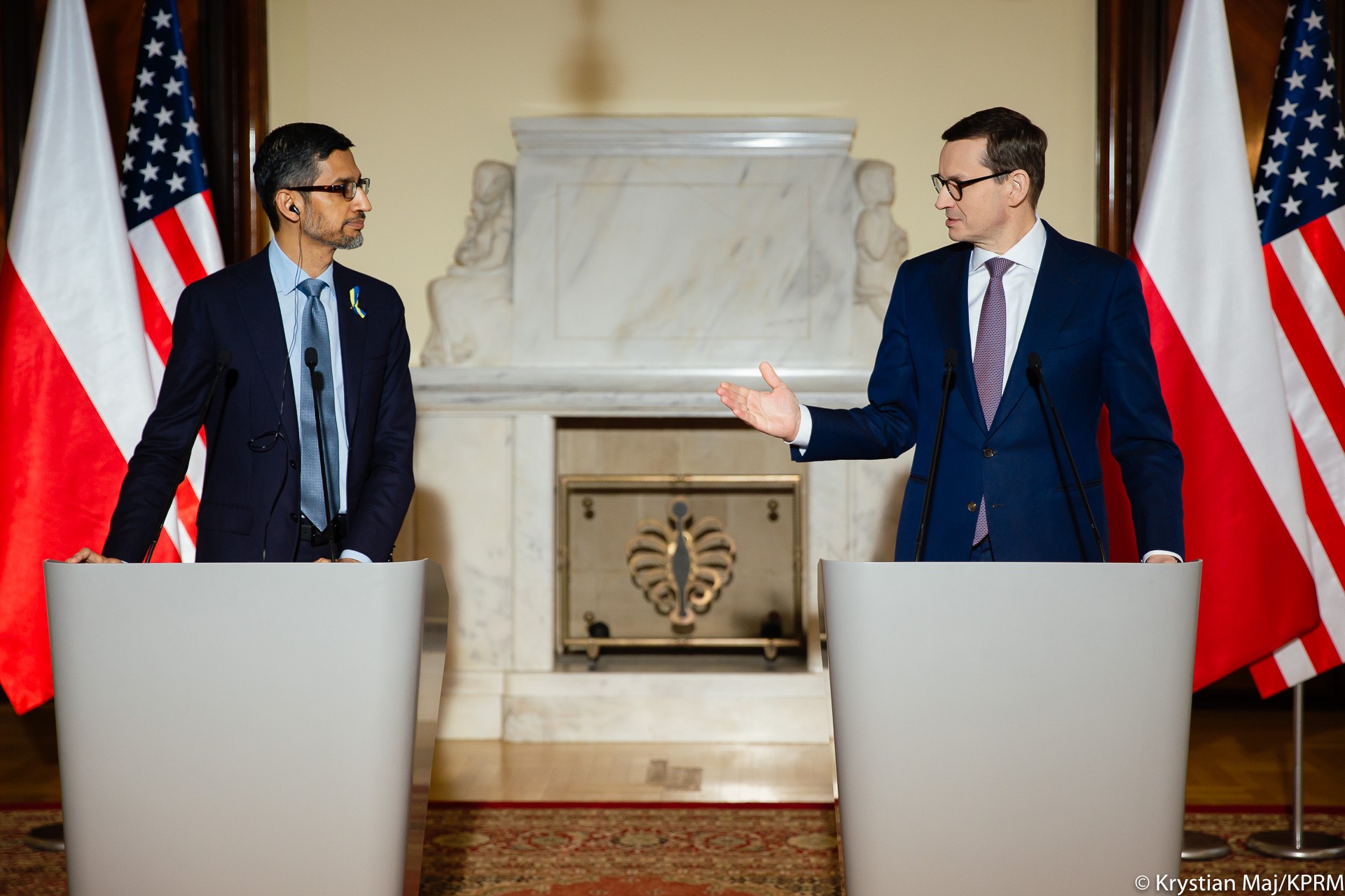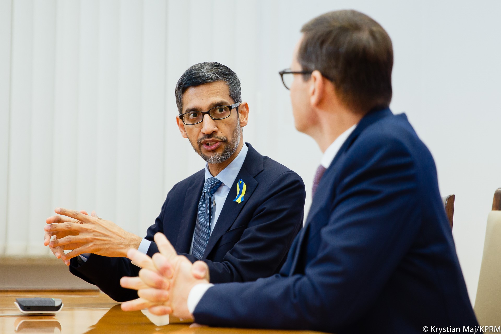 Współpraca z firmą Google w sytuacji agresji militarnej Rosji na Ukrainę była głównym tematem rozmów premiera Mateusza Morawieckiego z Sundarem Pichaiem dyrektorem generalnym Alphabet Inc. i jej spółki zależnej Google. Rozmówcy poruszyli kwestię cyberbezpieczeństwa i walki z dezinformacją. W drugiej części spotkania, w formie online, udział wziął także premier Słowenii Janez Janša i przedstawiciel premiera Czech. Premier podziękował za zobowiązanie po stronie Google’a do przekazania środków na rzecz uchodźców.