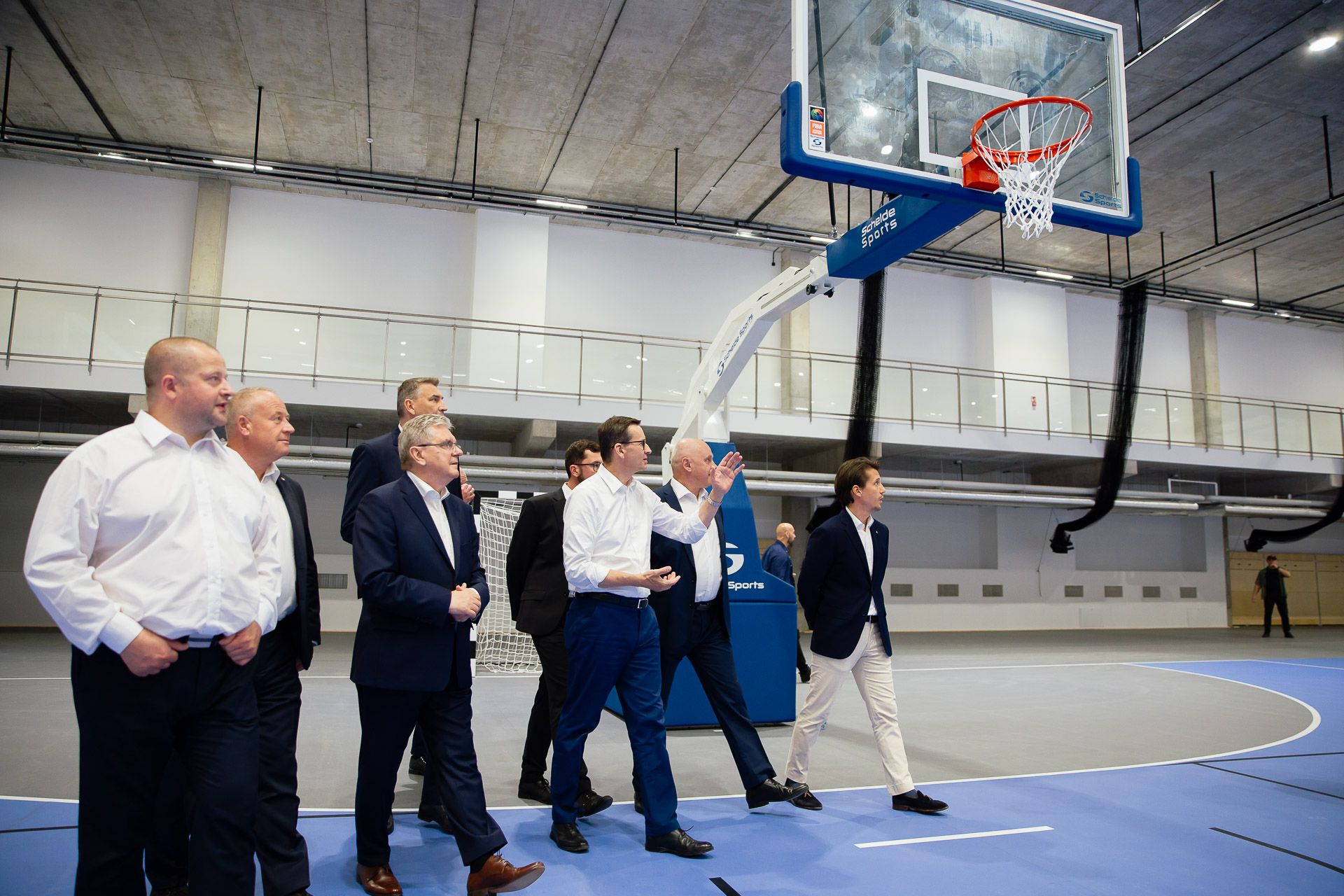 – To hala, na której jednocześnie może kilka meczy być rozgrywanych w siatkówkę, dwa pełnowymiarowe boiska do piłki ręcznej, oczywiście też koszykówka, ale mamy tutaj miejsca dla bieżni – na 60, na 200 metrów i oczywiście wiele innych dyscyplin lekkoatletycznych – powiedział premier.