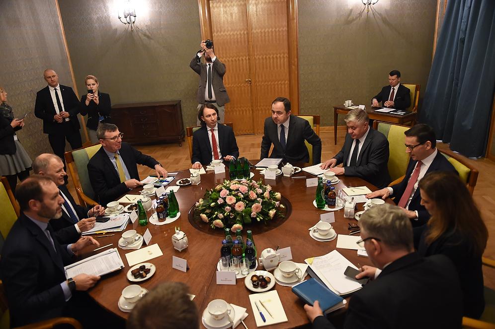 Premier Mateusz Morawiecki w poniedziałek (26 marca) spotkał się w KPRM z unijnym komisarzem ds. zdrowia i bezpieczeństwa żywności Vytenisem Andriukaitisem.
