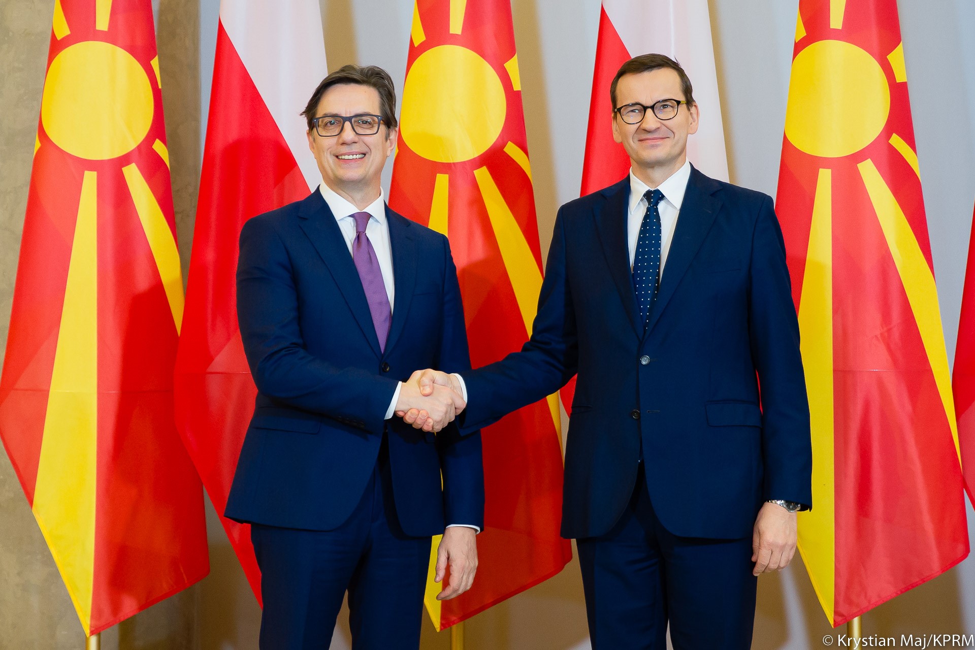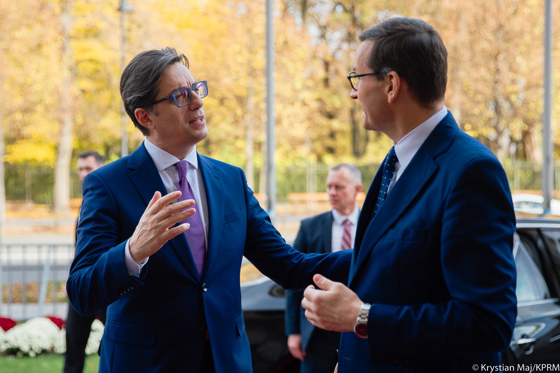 Szef polskiego rządu spotkał się z prezydentem Macedonii Północnej w ramach oficjalnej wizyty Stewa Pendarowskiego w Polsce. Liderzy rozmawiali m.in. na temat polityki rozszerzenia Unii Europejskiej. Wśród tematów były także te dotyczące bezpieczeństwa, w tym bezpieczeństwa energetycznego oraz współpracy wojskowej i przemysłu obronnego.