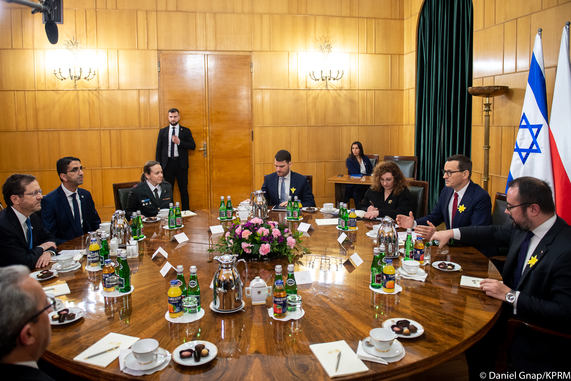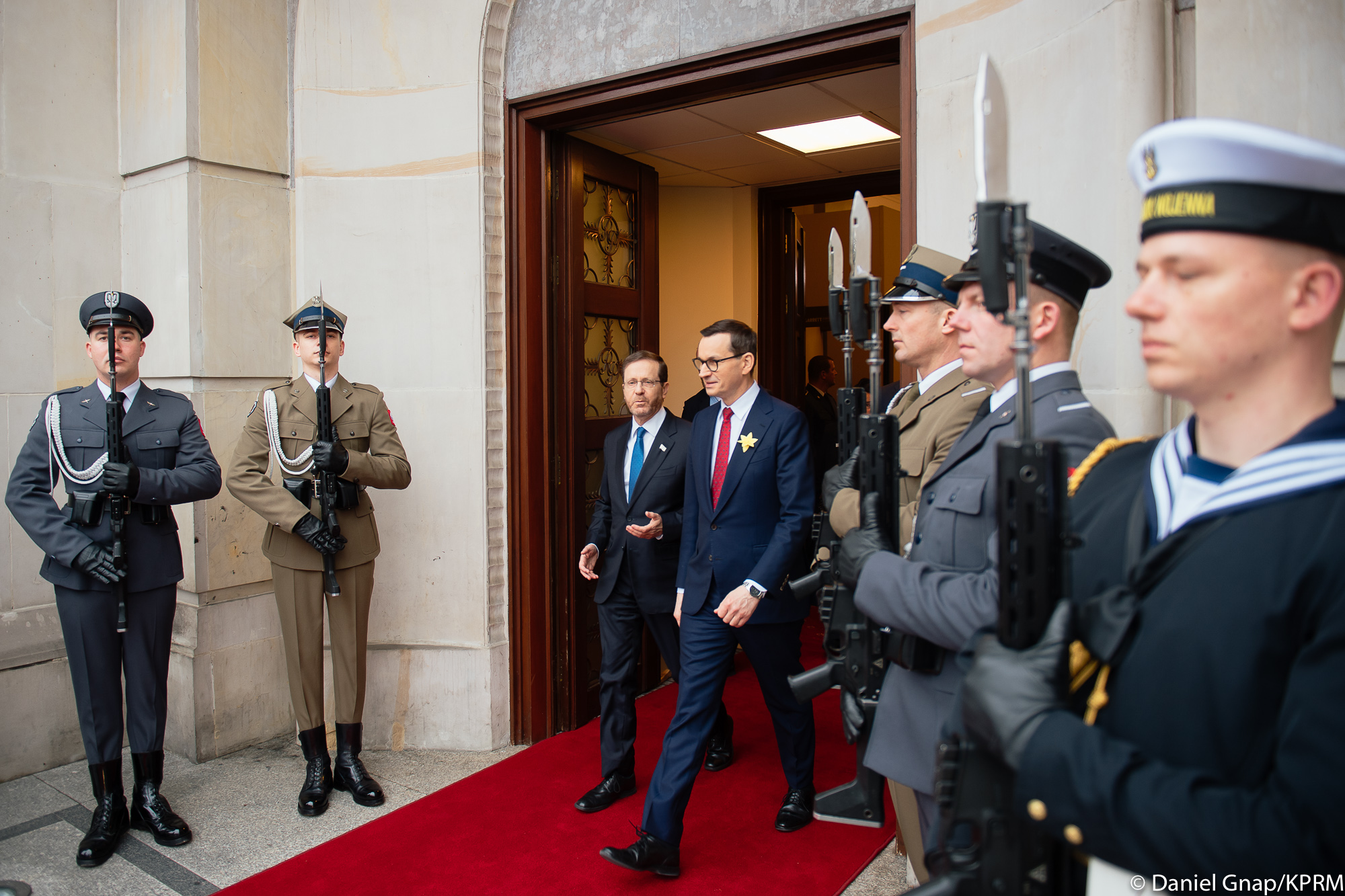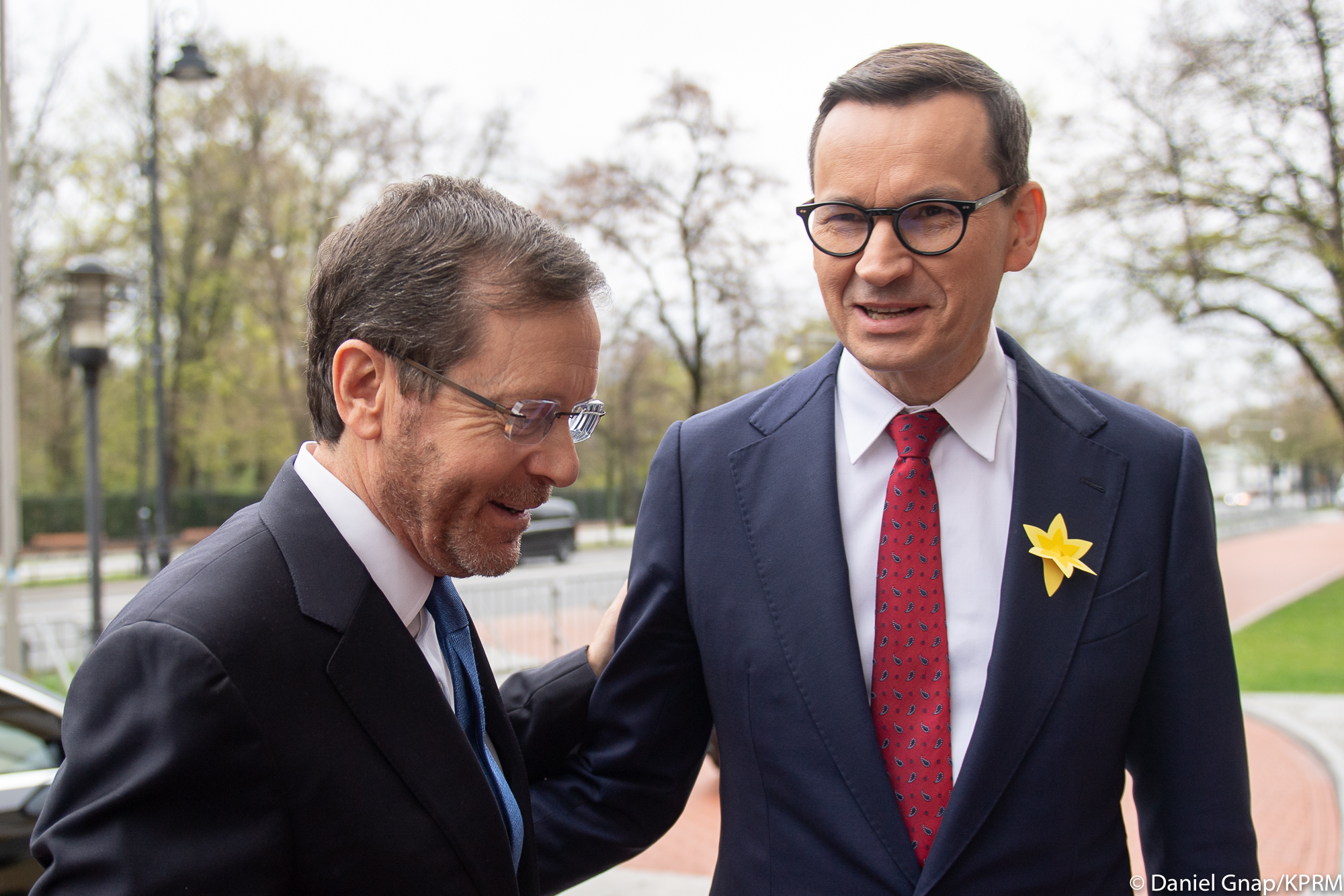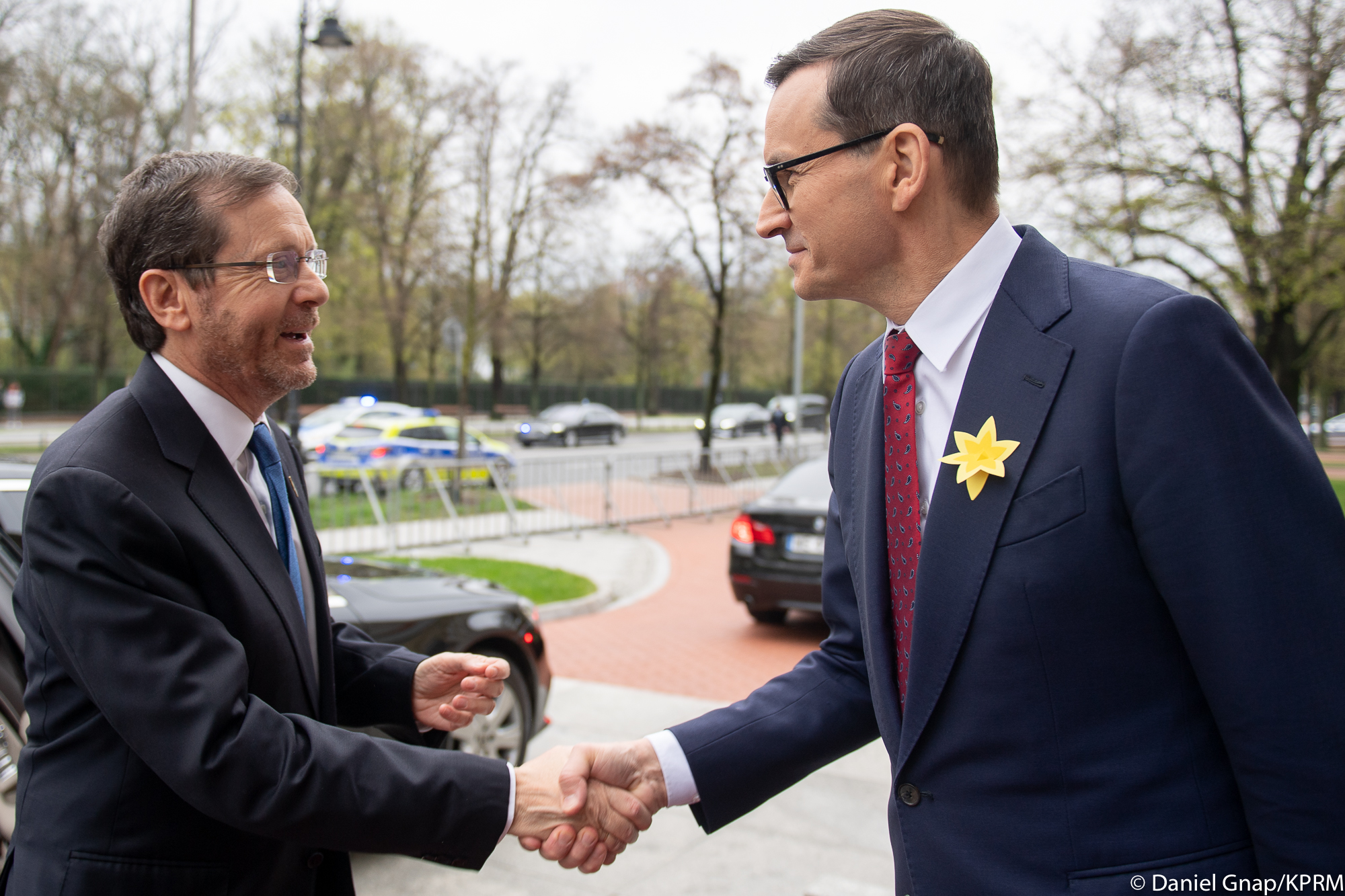 Sytuacja międzynarodowa – ze szczególnym uwzględnieniem wojny w Ukrainie i sytuacji na Bliskim Wschodzie oraz kwestie stosunków dwustronnych to główne tematy rozmów premiera Mateusza Morawieckiego z prezydentem Państwa Izrael Izaakiem Herzogiem. Politycy wzięli również udział w głównych obchodach upamiętniających 80. rocznicę wybuchu powstania w getcie warszawskim.