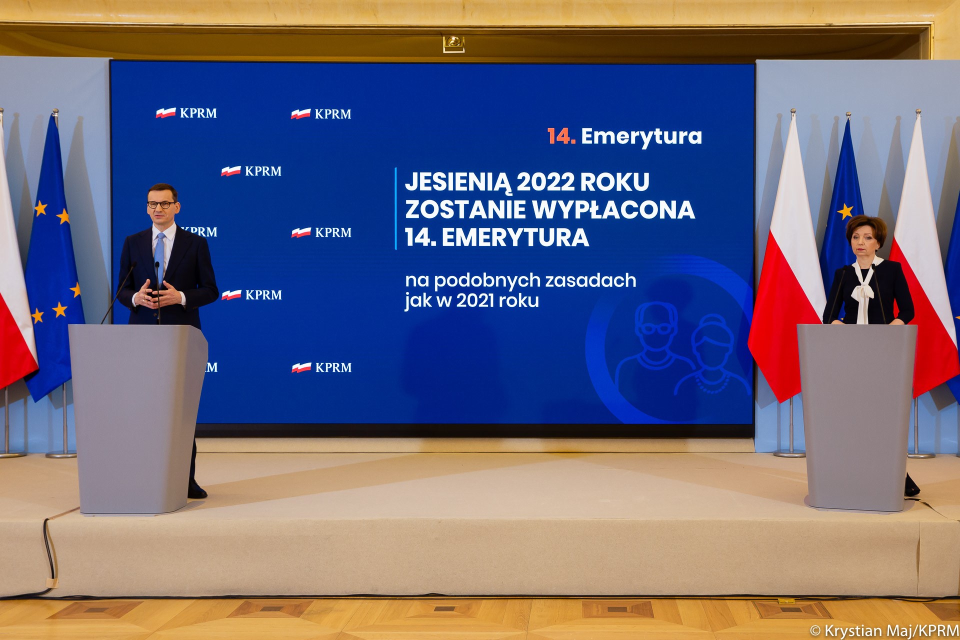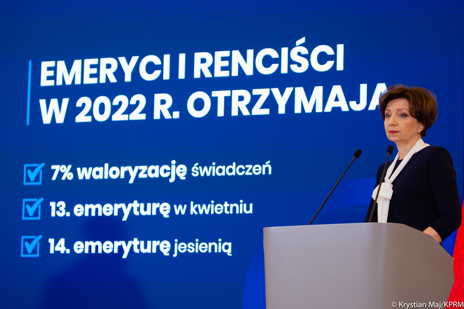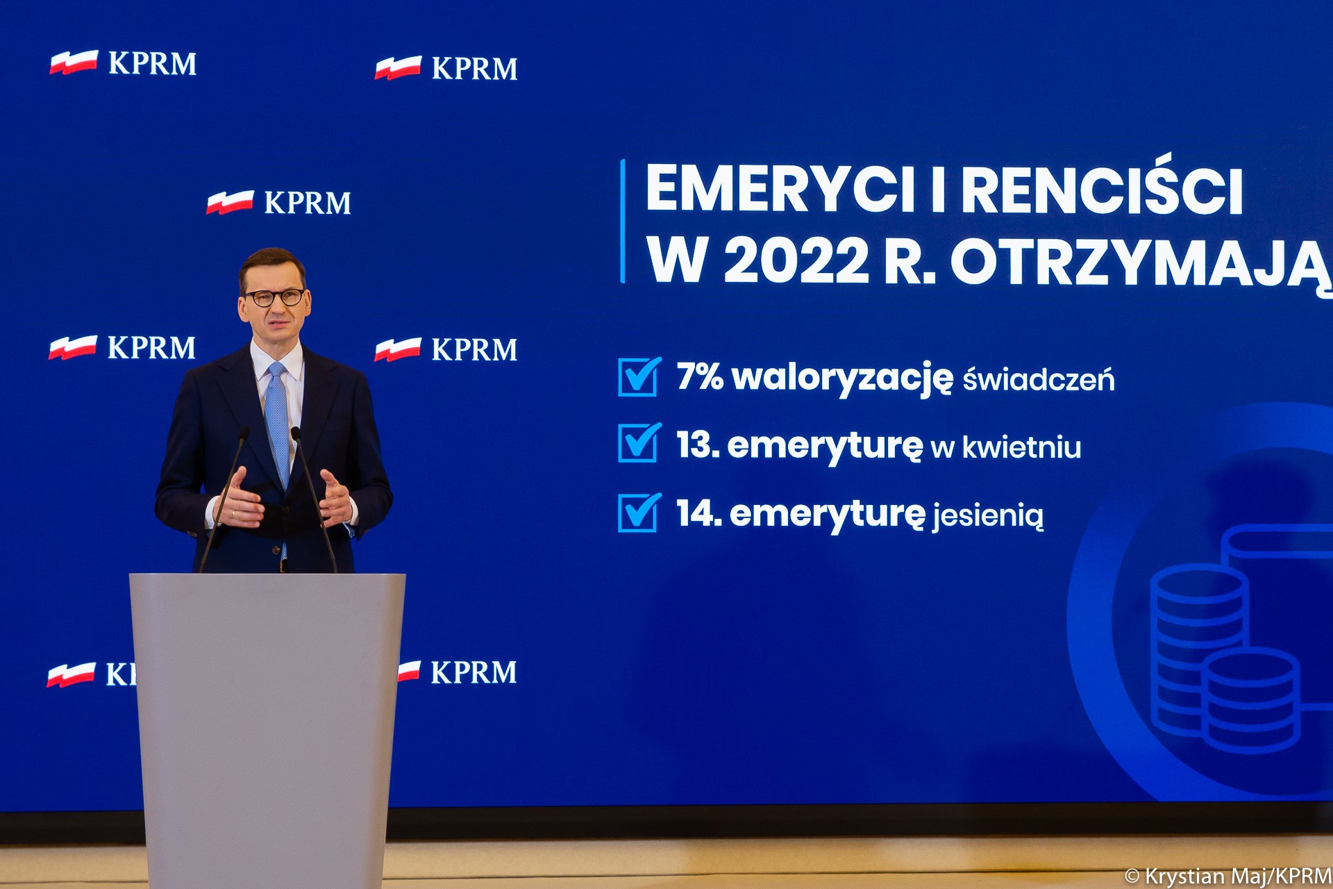 – To jest wzrost bezprecedensowy, ponieważ do tego dodajemy jeszcze 13. emeryturę i kolejne kilka procent z 14. emerytury, którą wypłacimy w drugiej połowie tego roku – podkreślił premier.