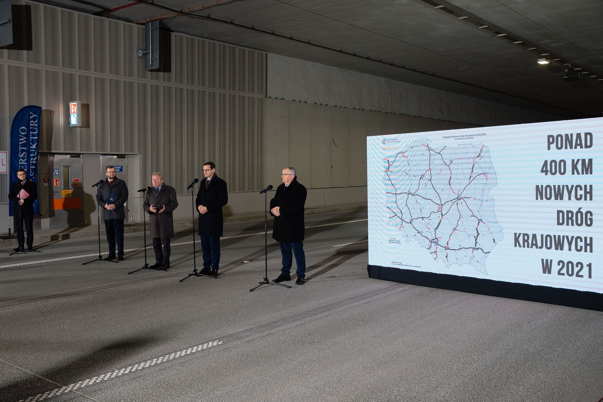 20 grudnia Prezes Rady Ministrów wziął udział w otwarciu najdłuższego tunelu w Polsce, który jest częścią ponad 4,6 kilometrowego odcinka Południowej Obwodnicy Warszawy (POW). Inwestycja znajduje się pod warszawskim Ursynowem na trasie S2. Jeszcze tego samego dnia, droga od węzła Puławska do węzła Warszawa Wilanów, została udostępniona kierowcom. Rząd pracuje nad połączeniem dróg, które zapewnią odpowiednią architekturę komunikacyjną w całej Polsce. Tylko w 2021 r. wybudowano ponad 400 km nowych arterii w naszym kraju.