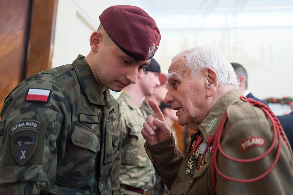 Sam fakt, że nasi żołnierze spotykają się tu dzisiaj z nami w obecności weteranów II wojny światowej, bohaterskich żołnierzy, jest dla nas zaszczytem. W ramach wojsk sojuszniczych walczyliście ramię w ramię na wszystkich frontach Europy, walczyliście za wolność Europy. Dziś chcemy wam wszystkim za to podziękować