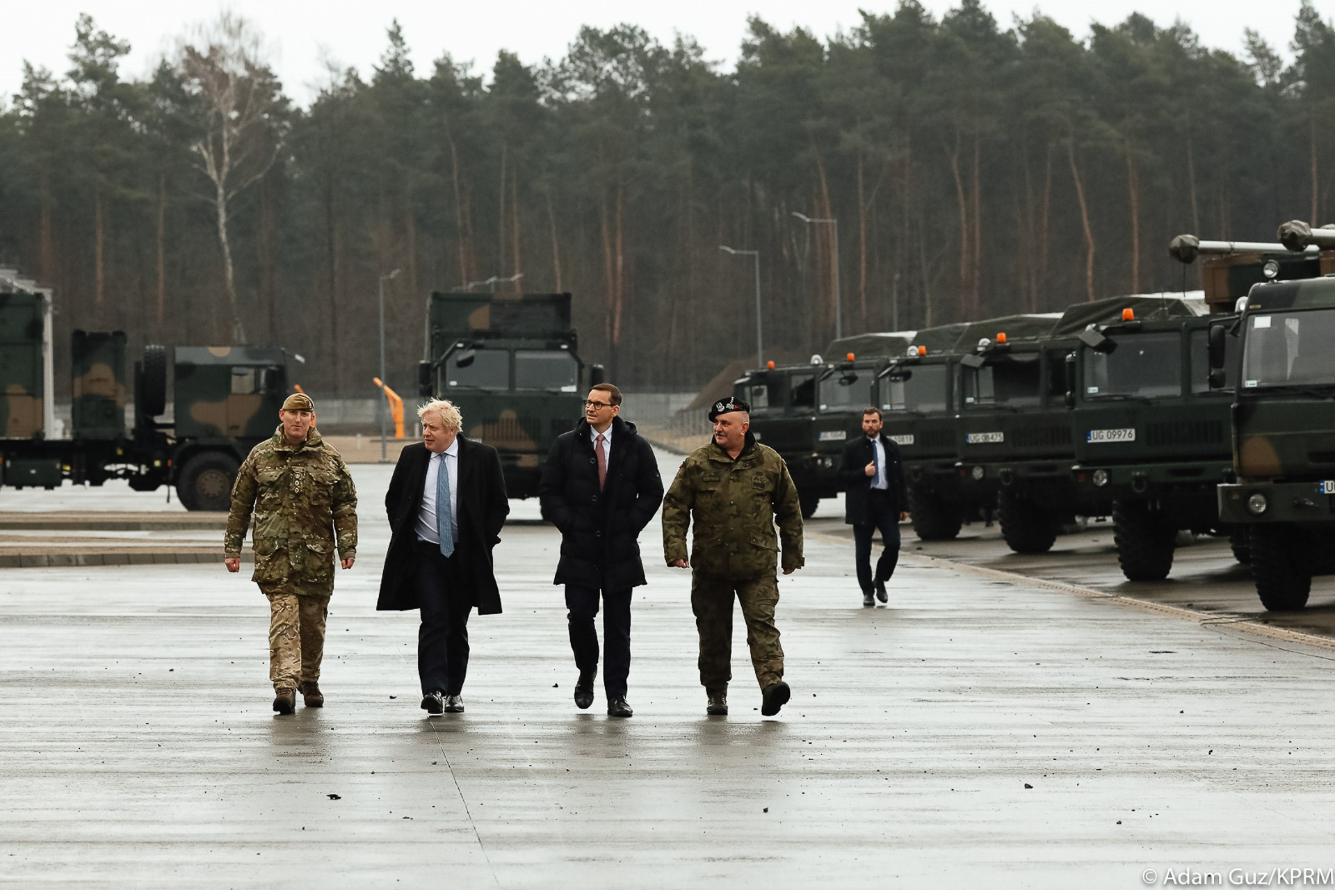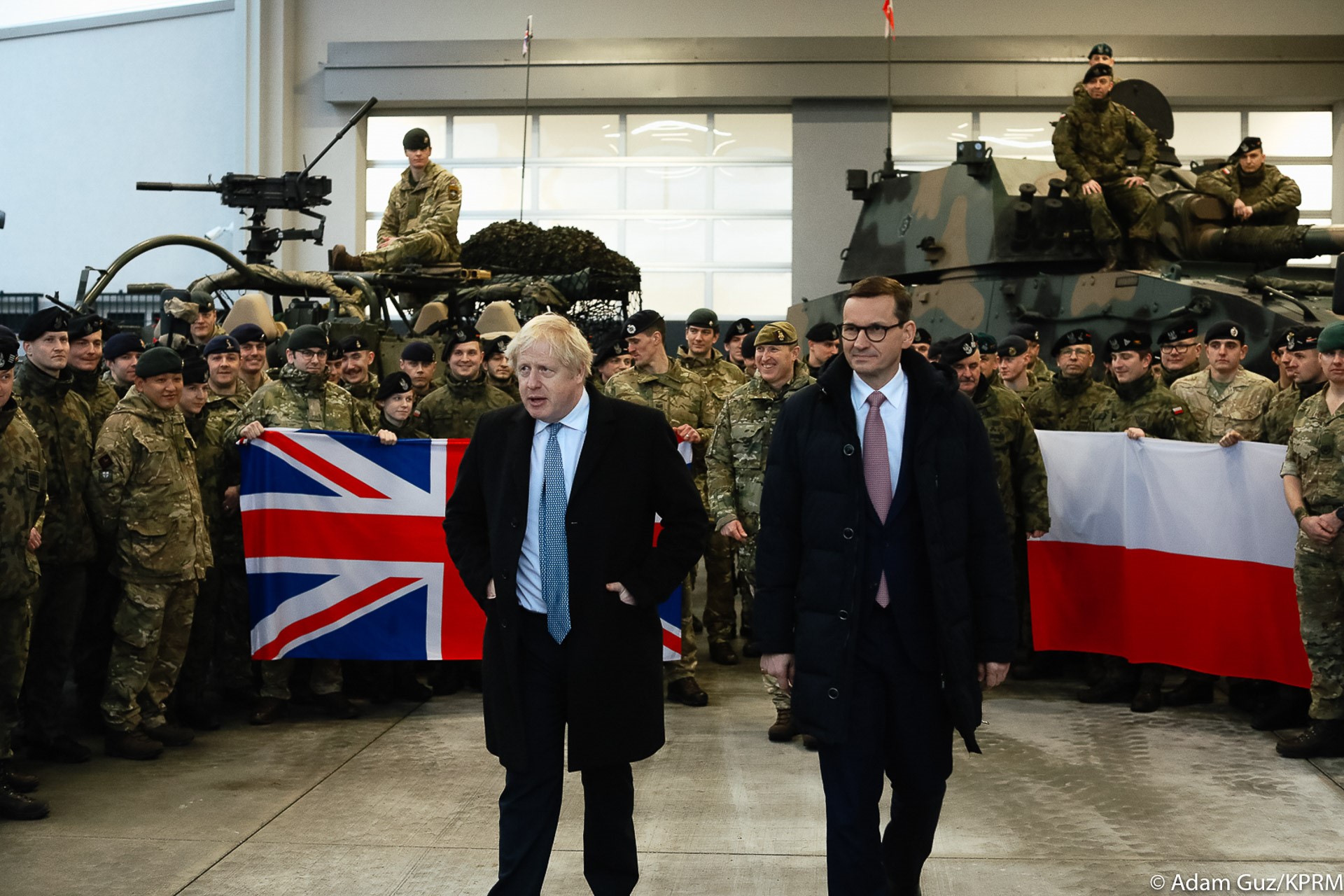 – Pragnę podziękować polskim i brytyjskim żołnierzom. Udajemy się do nich razem z premierem Borisem Johnsonem – podziękował premier Mateusz Morawiecki. I dodał: – Jesteśmy razem i razem działamy na rzecz utrzymania pokoju i spokoju. Dlatego właśnie wzmacniamy wschodnią flankę NATO, wzmacniamy też pokój w tej części Europy. Możemy być pewni, że tylko poprzez wspólne działania, spójną politykę, ten pokój może być utrzymany.