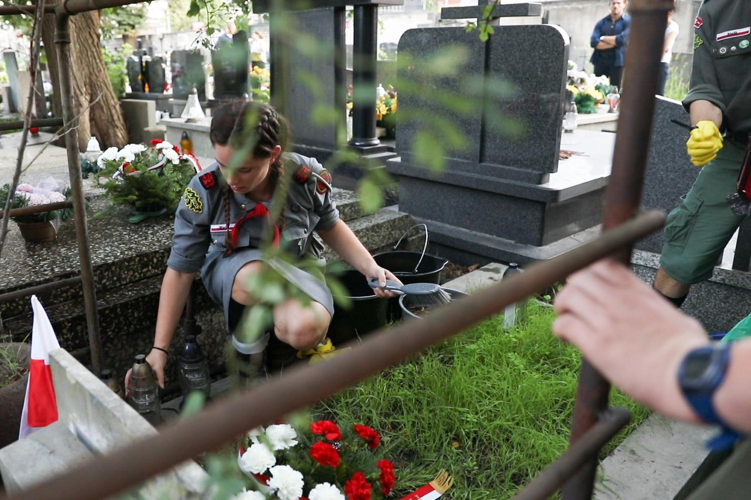 Szef rządu wraz z harcerzami uporządkował groby powstańców, m.in. Czesława Dittke ps. Kongo