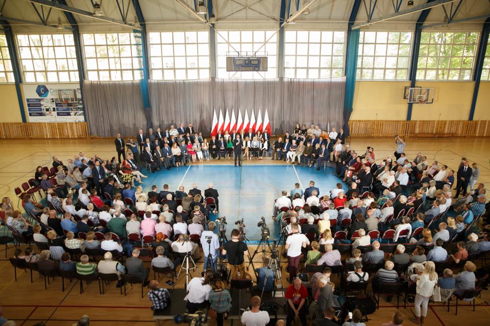 Premier Mateusz Morawiecki podkreślił, że wiele z tych zmian, które zostały zaprezentowane, które są planowane na przyszłość - wyprawka, dodatkowe miliardy na drogi lokalne, obniżki podatków i ZUS, można było przeprowadzić dzięki Jarosławowi Kaczyńskiemu, który miał wizję zmian i determinację do ich realizacji.