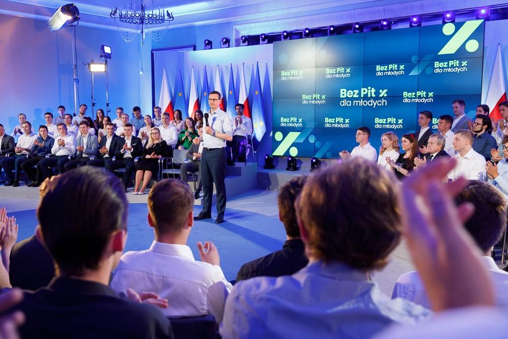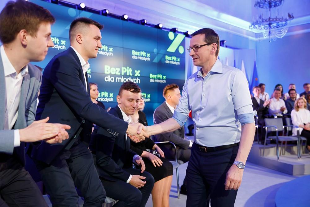Premier ocenił, że projekt zerowego PIT do 26. roku życia jest wyjątkowy w skali europejskiej. Dodał, że środki na ten cel pochodzą m.in. z uszczelnienia poboru podatków.
