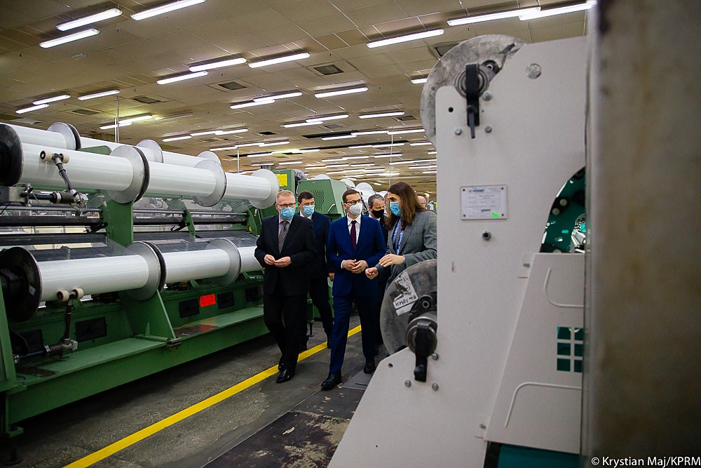 Premier Mateusz Morawiecki podczas wizyty w województwie wielkopolskim odwiedził firmę Miranda Textiles.