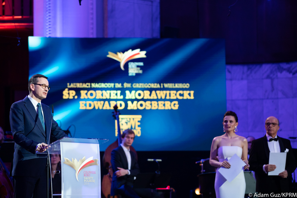 Mateusz Morawiecki odebrał nagrodę im. św. Grzegorza I Wielkiego przyznaną śp. Kornelowi Morawickiemu przez miesięcznik „Niezależna Gazeta Polska – Nowe Państwo” za bezkompromisową walkę o prawdę i wolność.