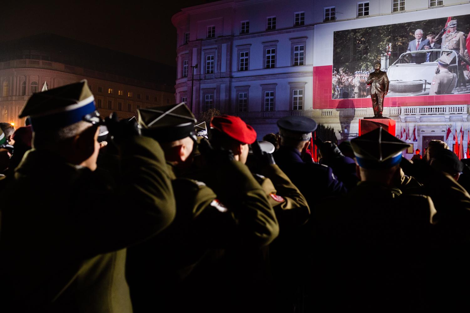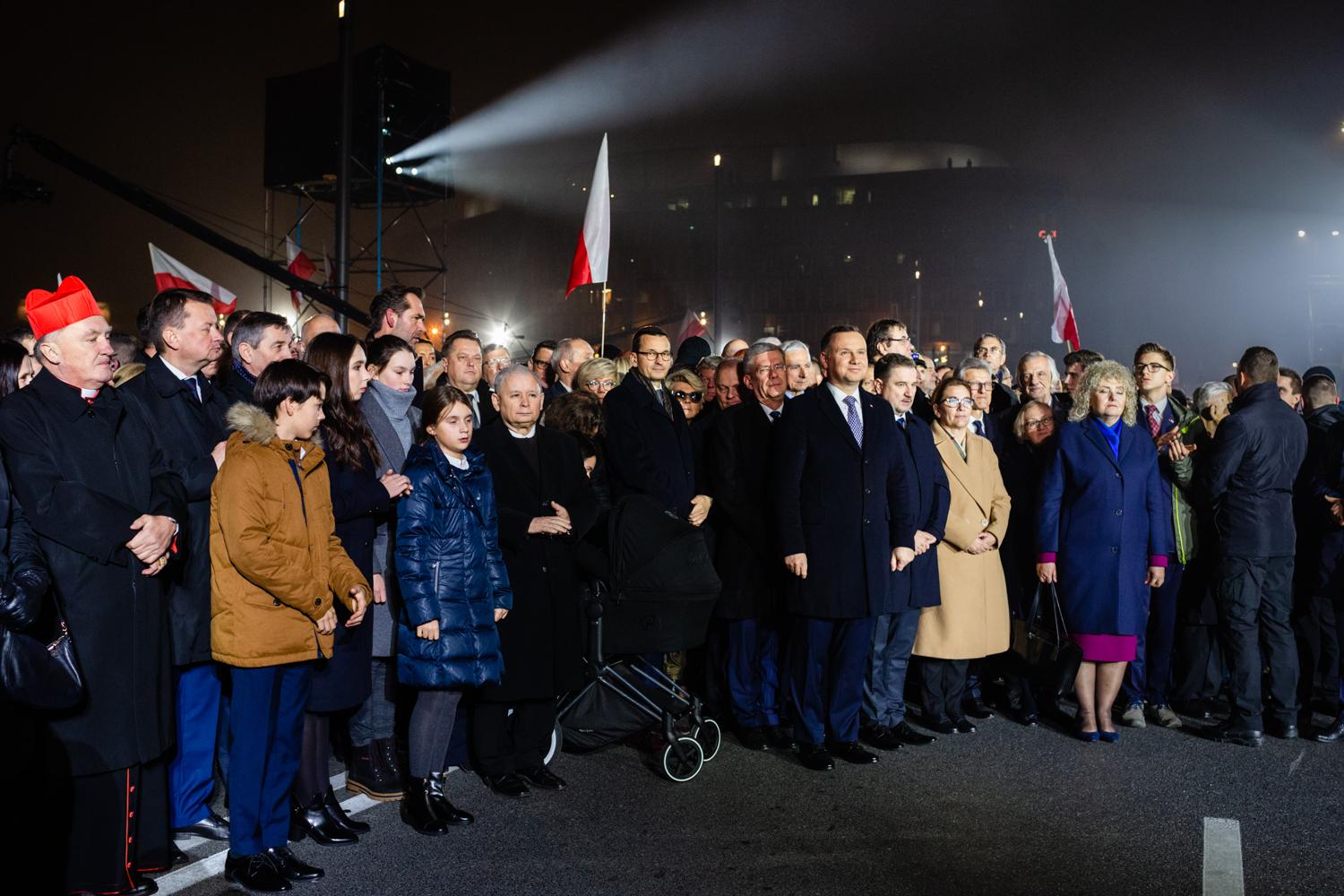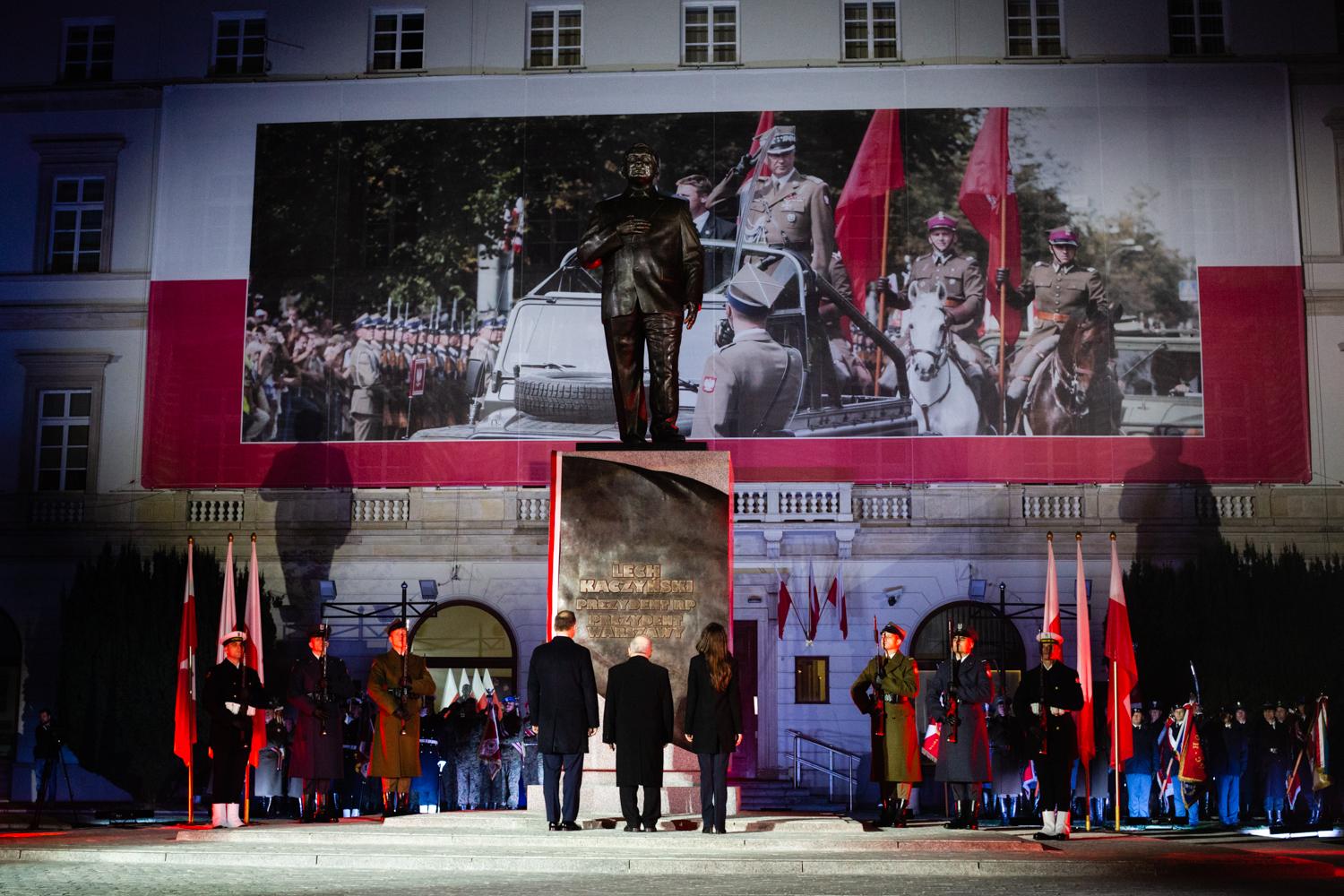 Ceremonię odsłonięcia monumentu poprzedziła uroczysta msza święta w Archikatedrze Świętego Jana. Podczas głównych uroczystości, które odbyły się na Placu Marszałka Józefa Piłsudskiego odczytano m.in. laudację o śp. Prezydencie Lechu Kaczyńskim oraz Apel Pamięci. Następnie premier Mateusz Morawiecki złożył kwiaty pod pomnikiem.