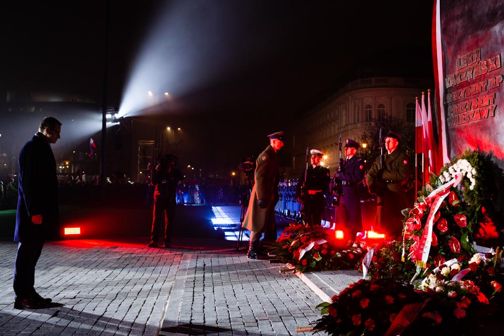 Prezes Rady Ministrów wziął udział w uroczystym odsłonięciu pomnika Prezydenta Rzeczypospolitej Polskiej śp. prof. Lecha Kaczyńskiego w Warszawie.
