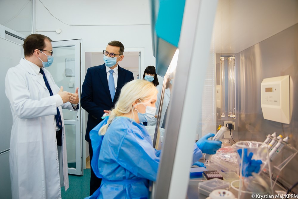 Premier Mateusz Morawiecki odwiedził laboratorium Państwowej Inspekcji Sanitarnej w Warszawie, gdzie wykorzystywane są najnowsze technologie do sekwencjonowania wirusa – m.in. wariantu delta. Rozmawiał ze specjalistami, którzy zajmują się badaniem mutacji koronawirusa.