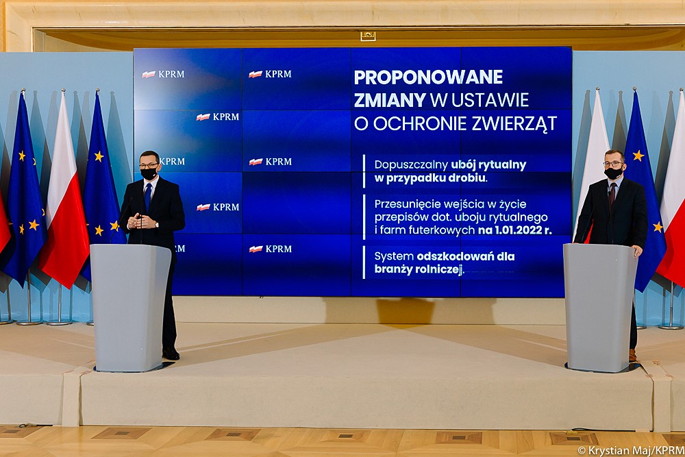 „Jesteśmy odpowiedzialni za wszystko, co nas otacza i powinniśmy kształtować warunki hodowli w taki sposób, żeby wspierać rolnictwo polskie w jego rozwoju” – powiedział szef rządu. Jak dodał, nowoczesne państwa XXI wieku nie muszą skazywać zwierząt na cierpienie.