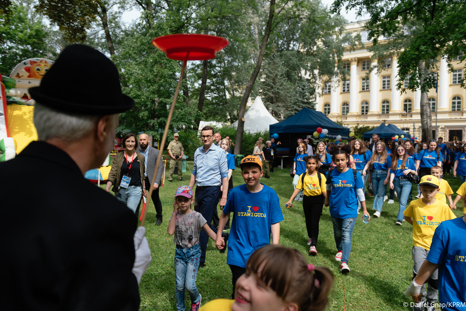 Wśród najmłodszych uczestników pikniku były również dzieci z Ukrainy. Szef rządu złożył im szczególne życzenia szybkiego powrotu do swoich domów, ojców i braci.