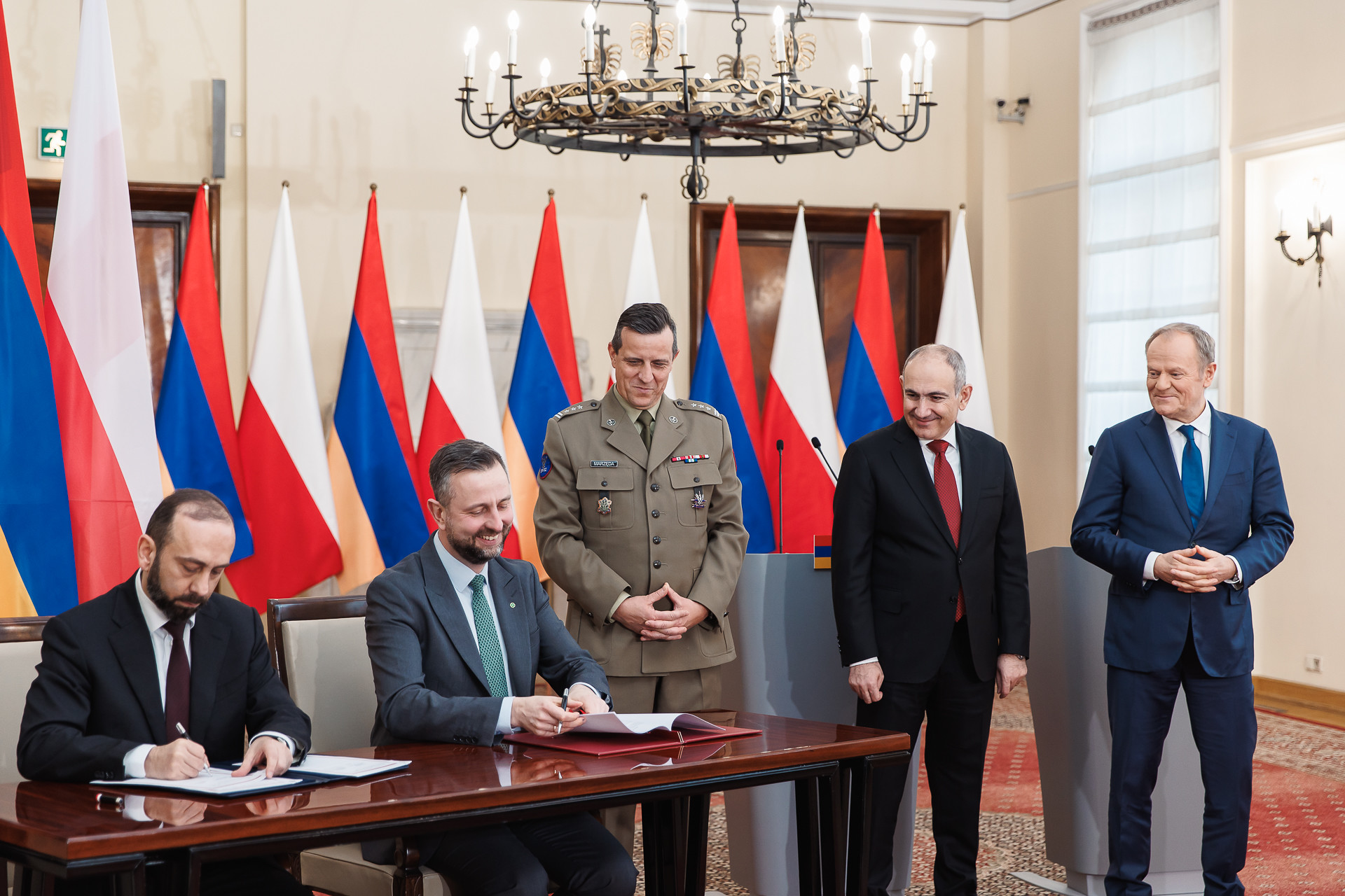 „Europejskie aspiracje Armenii są absolutnie uzasadnione. Polska była, jest i będzie rzecznikiem mądrego i pragmatycznego rozszerzania UE” - powiedział Premier Donald Tusk po spotkaniu z szefem armeńskiego rządu Nikolem Paszynianem. Rozmowy liderów dotyczyły wsparcia Armenii w akcesji tego kraju do Unii Europejskiej, a także współpracy dwustronnej, czego przykładem jest podpisana dziś przez Ministra Obrony Narodowej Władysława Kosiniaka-Kamysza i Ministra Spraw Zagranicznych Ararata Mirzoyana umowa o dwustronnej współpracy wojskowo-technicznej. Liderzy rządów rozmawiali również o znaczeniu demokratycznych reform i wspólnym rozumieniu historii.