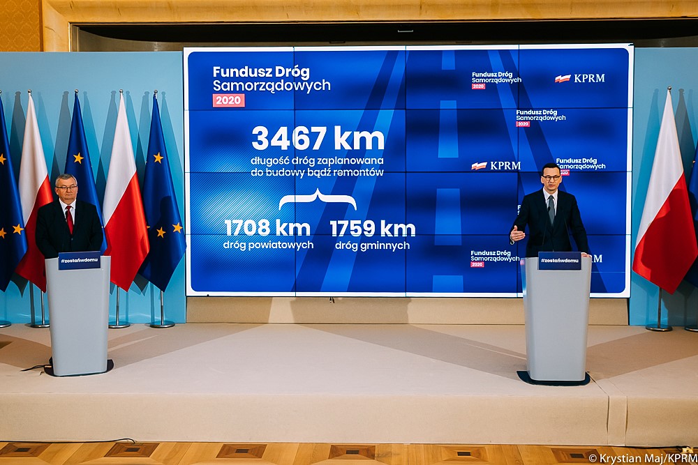 „Fundusz Dróg Samorządowych jest istotnym elementem walki ze skutkami epidemii. Poprzez budowę dróg, tworzymy nowe miejsca pracy” – zaznaczył szef rządu podczas wspólnej konferencji z ministrem infrastruktury.