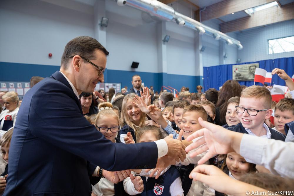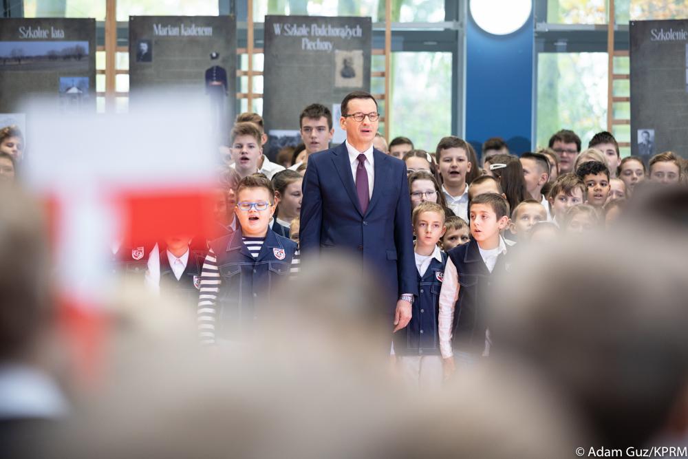Z okazji nadchodzącego Święta Niepodległości Mateusz Morawiecki wziął udział w uroczystym apelu w szkole podstawowej w Radzyminie. Placówka przystąpiła do ogólnopolskiej akcji Szkoła do Hymnu. Prawie 4 miliony uczniów i prawie 400 tys. nauczycieli z ponad 19 tys. szkół, przedszkoli i placówek oświatowych wspólnie o symbolicznej godzinie 11.11 odśpiewali hymn narodowy, jest to kontynuacja ubiegłorocznej inicjatywy Rekord dla Niepodległej.