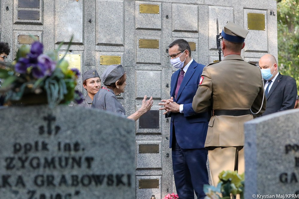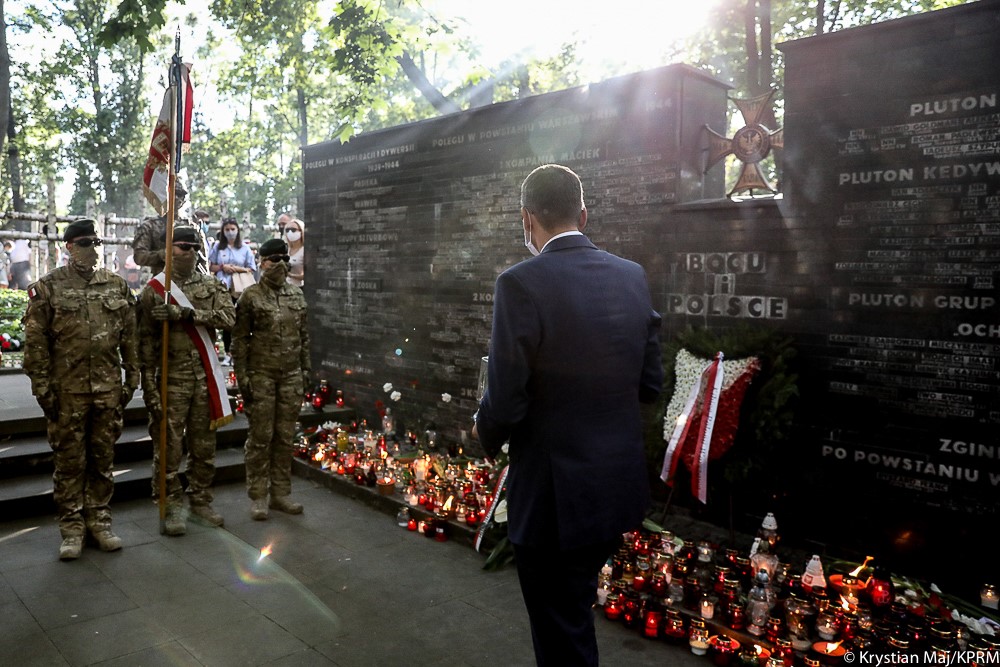 „Dziś z ogromną wdzięcznością myślimy o tych, którzy wtedy stanęli w tym nierównym boju. Myślimy o całej płonącej wtedy Warszawie, o wszystkich którzy zginęli i o wszystkich, którzy przeżyli. Chcemy i wierzymy w to, że z ich trudu, z ich wysiłku, z ich krwi zrodziła się wolna Polska. Był to kamień milowy do wolnej Polski” – powiedział premier Mateusz Morawiecki.