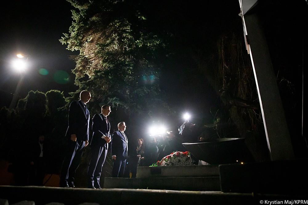 Podczas wizyty premier złożył też wieniec pod krzyżem i obeliskiem upamiętniającymi kilkadziesiąt osób straconych podczas niemieckiej okupacji w 1942 i 1944 r.