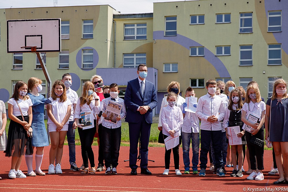 Premier Mateusz Morawiecki razem z uczniami, nauczycielami i rodzicami uczestniczył w zakończeniu roku szkolnego w Szkole Podstawowej nr 5 im. Jana Pawła II w Pionkach. Pandemia COVID-19 sprawiła, że rok szkolny 2019/2020 był czasem szczególnym. Uczniowie oraz nauczyciele zamienili sale lekcyjne w szkołach na zdalne nauczanie w swoich domach. Dzięki zaangażowaniu i dobrej współpracy w zdecydowanej większości szkół nauka na odległość przebiegła sprawnie.
