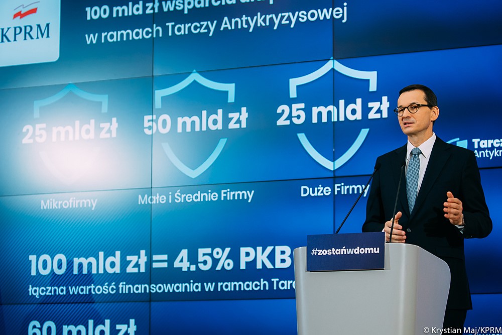 „Skierujemy bezpośrednio 100 mld zł do przedsiębiorstw, aby chronić miejsca pracy” – zaznaczył Mateusz Morawiecki podczas wspólnej konferencji z szefem Narodowego Banku Polskiego.